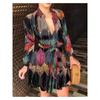 Летнее новое женское платье с длинным рукавом и V-образным вырезом, модное сексуальное с принтом