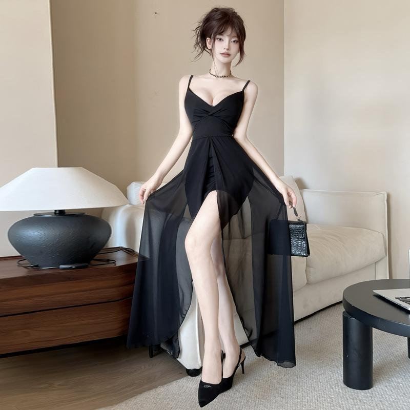 Женское сексуальное платье с глубоким вырезом, сетчатой строчкой и тонкими подтяжками — купить товар онлайн с бесплатной доставкой до всему миру!