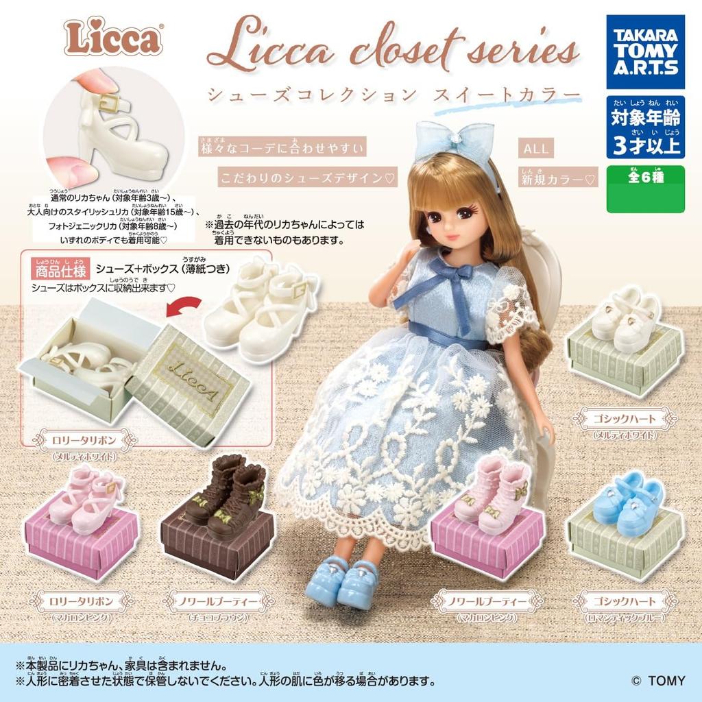 Коллекция обуви серии Licca closet, сладкие цвета, все 6 типов, полный комплект, полный комплект, gacha gacha gacha, капсульная игрушка TakaraTommyArts