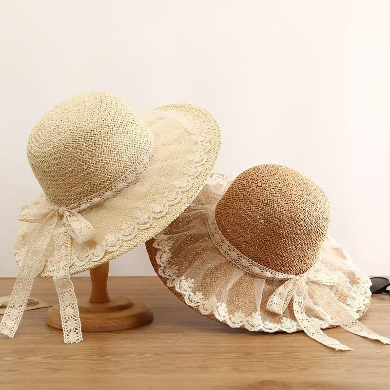Открытый морской пляж большая шляпа солнцезащитный козырек солнцезащитный крем соломенная шляпа соломенная шляпа прилив лето маленькая свежая шляпа-бантик из мицелия для женщин