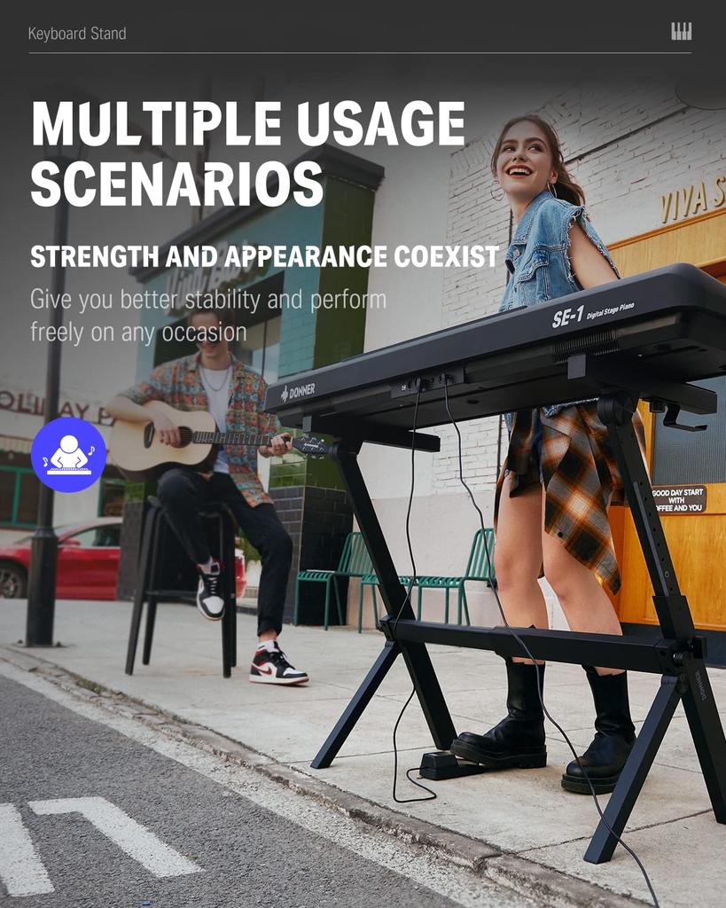 Электронная клавиатура пианино Donner Регулируемая высота Совместимость с электронными клавишами Подходит для классной комнаты DKS-100 Z-образная стойка, складная, 55-85 см,