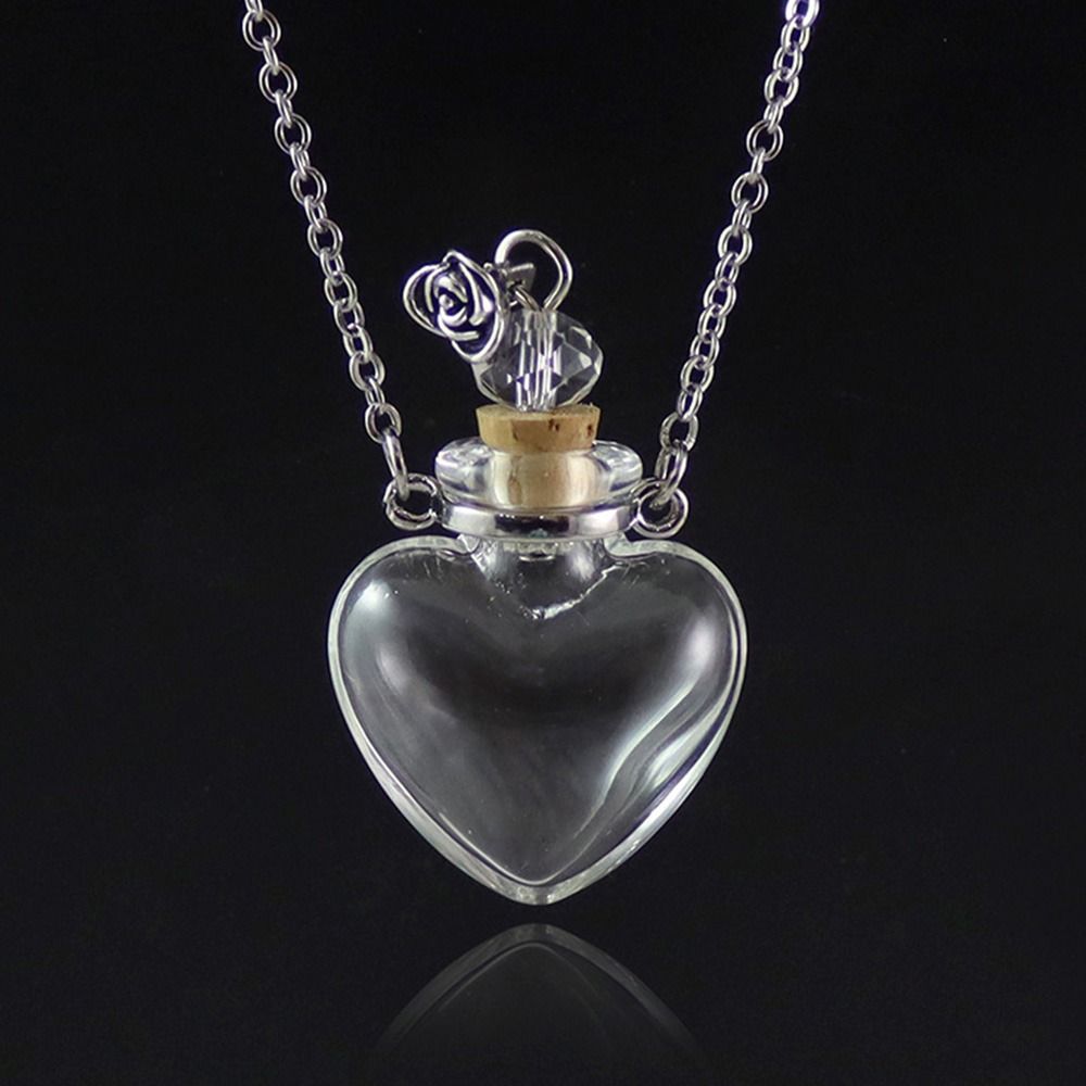 Ожерелье в виде флакона для духов в форме сердца, памятные украшения, кулон в виде флакона желаний, диффузор для эфирных масел
