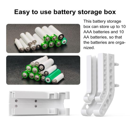 Этот удобный контейнер для хранения батареек, вмещающий до 10 батареек типа AAA и 10 батареек типа AA, обеспечивает простой и эффективный способ хранения батареек в порядке и под рукой для легкого доступа.