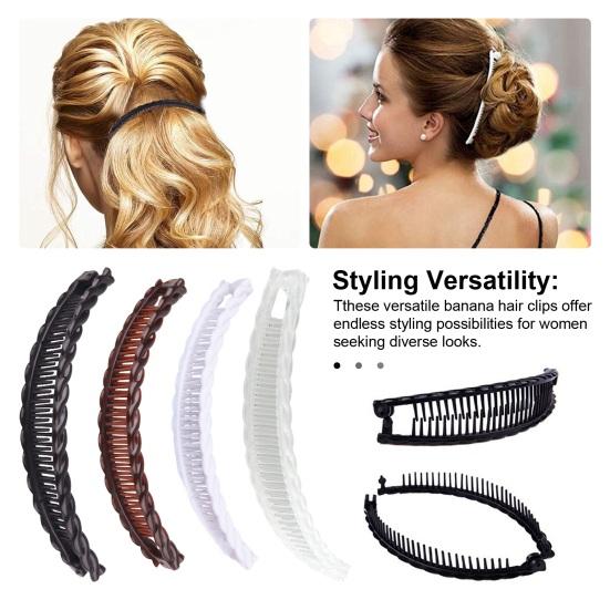 Универсальность стиля: От шикарных конских хвостиков до замысловатых косичек «рыбий хвост» — эти универсальные заколки-бананы предлагают бесконечные возможности для укладки женщинам, ищущим разнообразные образы.