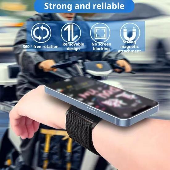Отрегулируйте ремни так, чтобы они удобно сидели на вашей руке, благодаря гибкой конструкции.. Этот браслет, изготовленный из легкой и мягкой ткани, дарит освежающие ощущения.. Благодаря прочному магнитному креплению ваш телефон надежно удерживается на месте и его можно легко снять за считанные секунды.. Попрощайтесь с резкими толчками с этим надежным держателем для телефона на запястье.