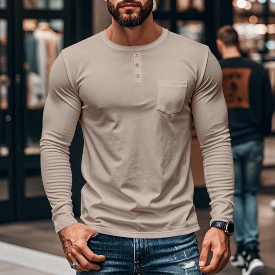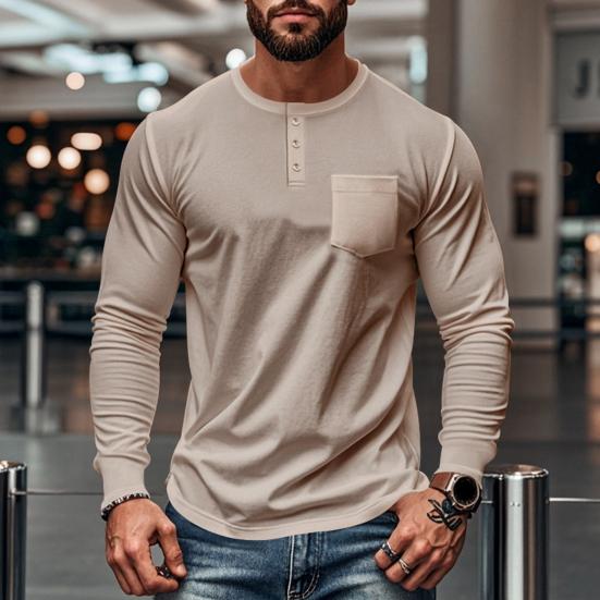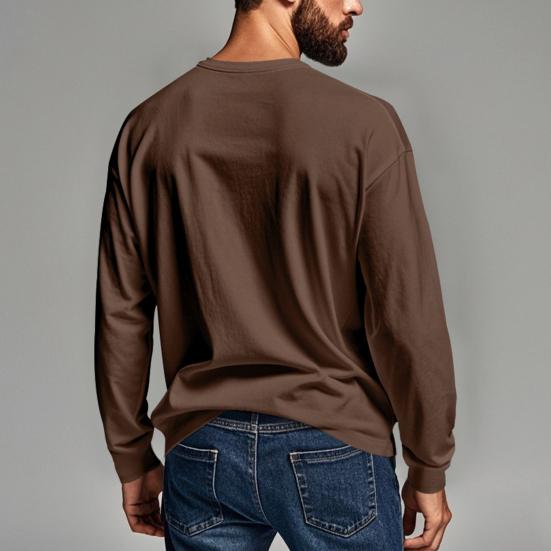 Этот мужской топ изготовлен из высококачественного полиэфирного волокна, обеспечивающего удобную и воздухопроницаемую посадку.. Классический стандартный стиль создает непринужденный, но стильный образ, идеально подходящий для различных случаев.. Этот топ с длинными рукавами и простым круглым вырезом однотонного цвета универсален и легко сочетается с повседневными шортами, брюками или джинсами..