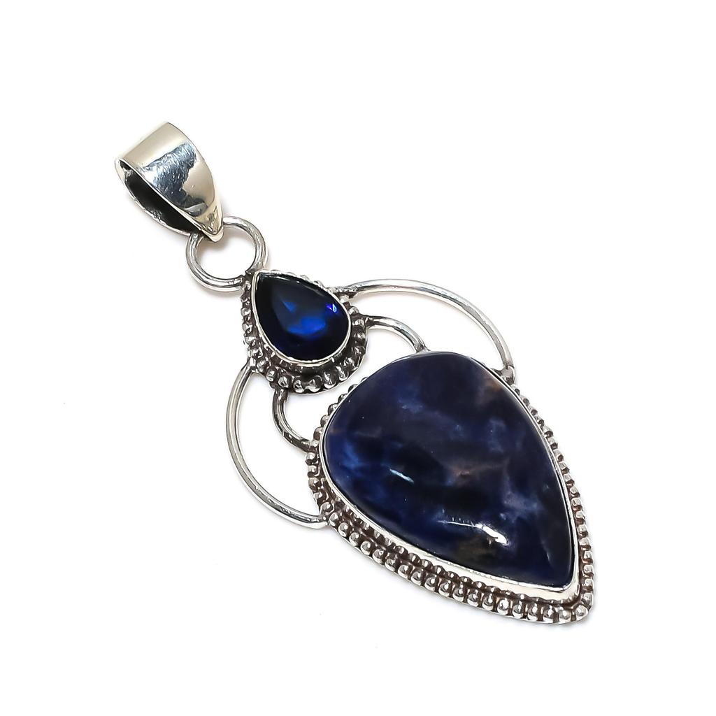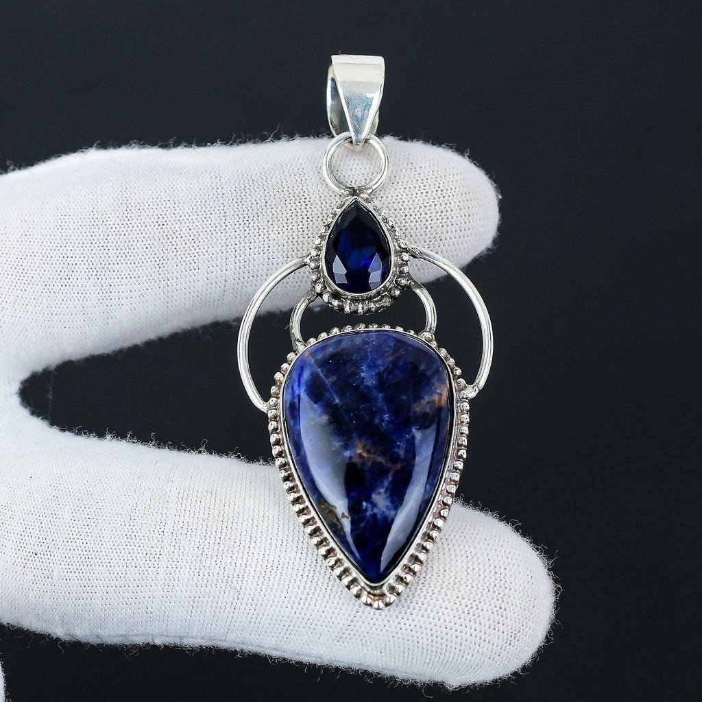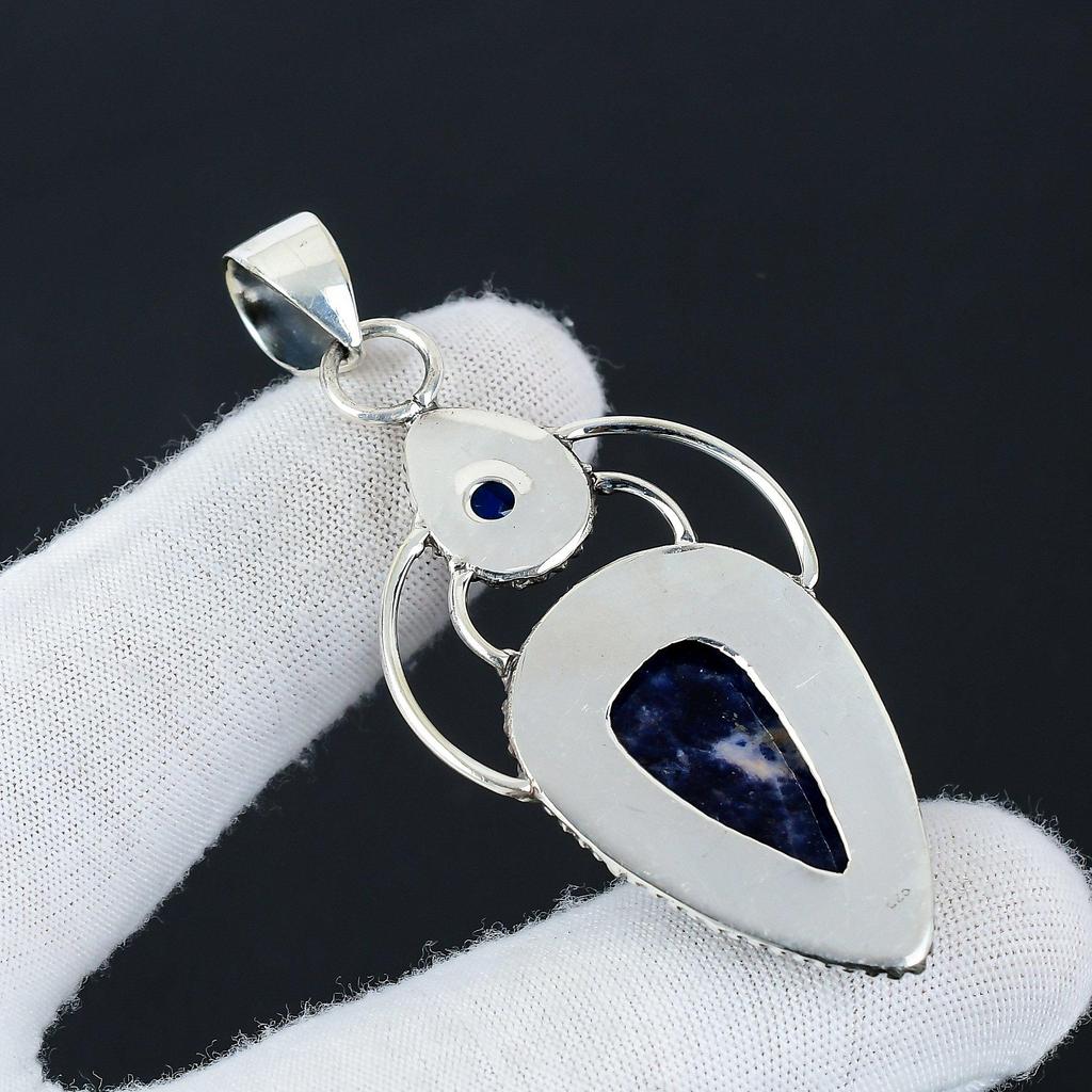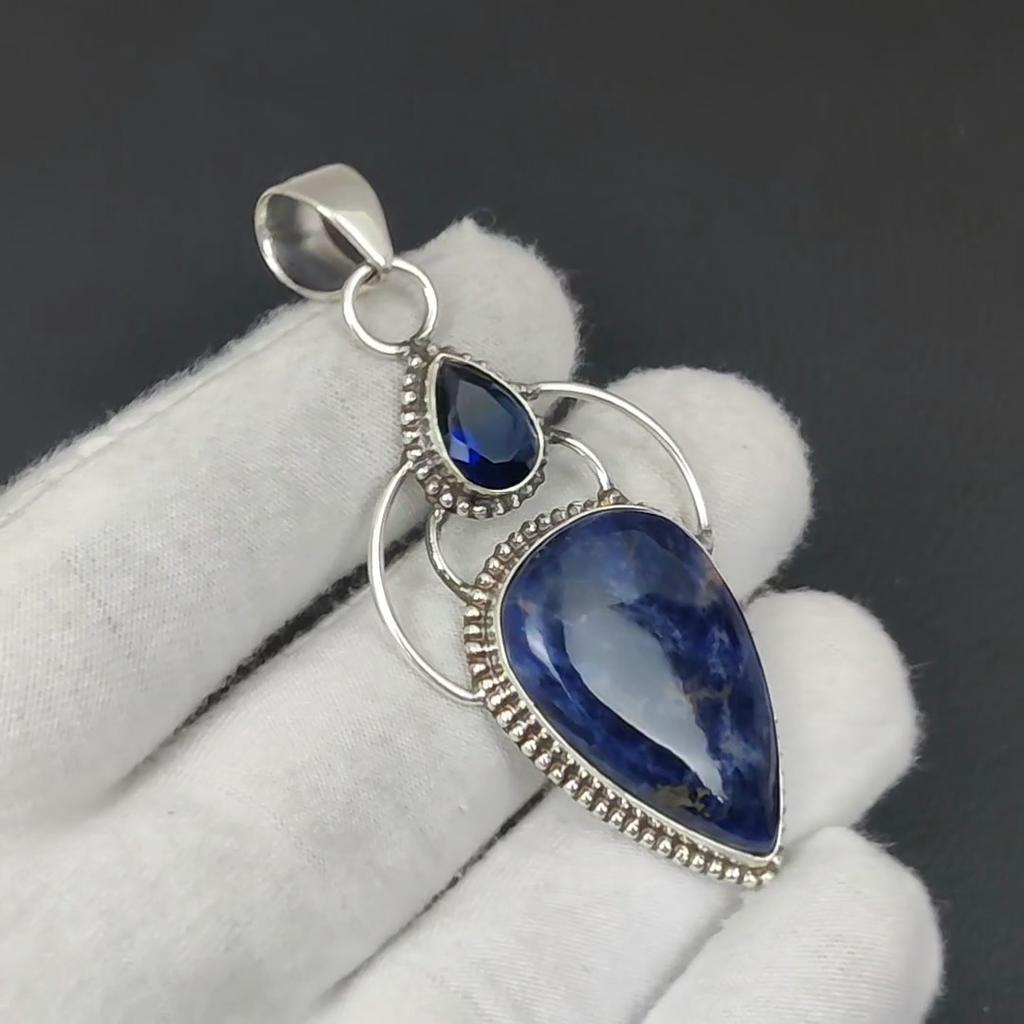 Серебряный кулон с натуральным содалитом из стерлингового серебра 925 пробы — дизайн ручной работы, повседневные украшения, уникальный кулон с синим сапфиром в подарок
