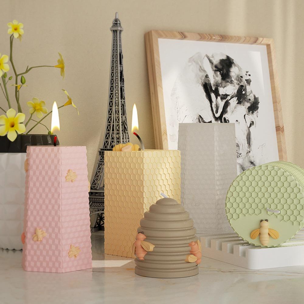 Силиконовая форма для свечей ручной работы для вечеринок, формы для торта из смолы, 3D-форма для свечей в виде пчелиных сот, художественная восковая форма