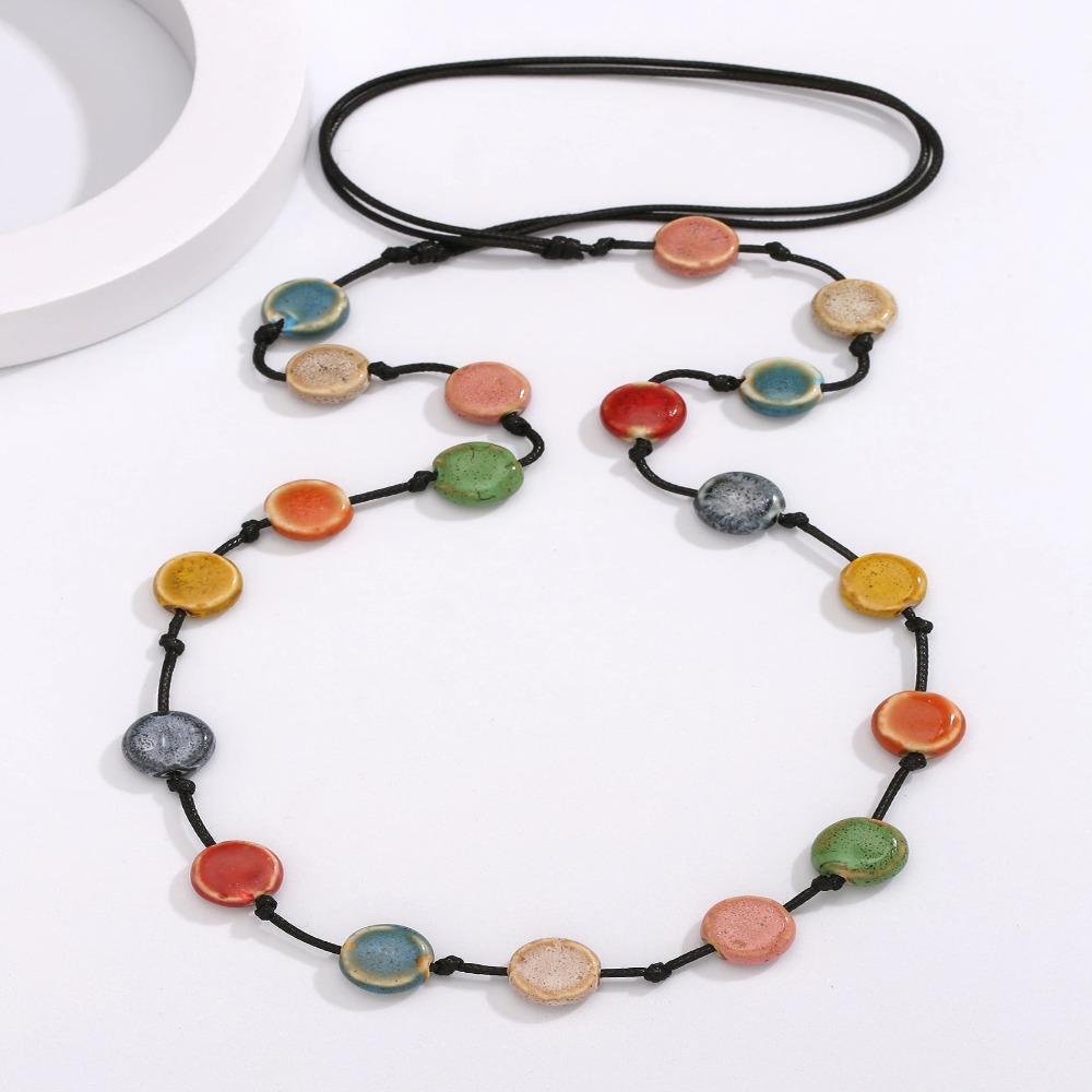Красочные простые плоские бусины индивидуальные украшения длинное ожерелье керамические бусины ожерелья с подвесками