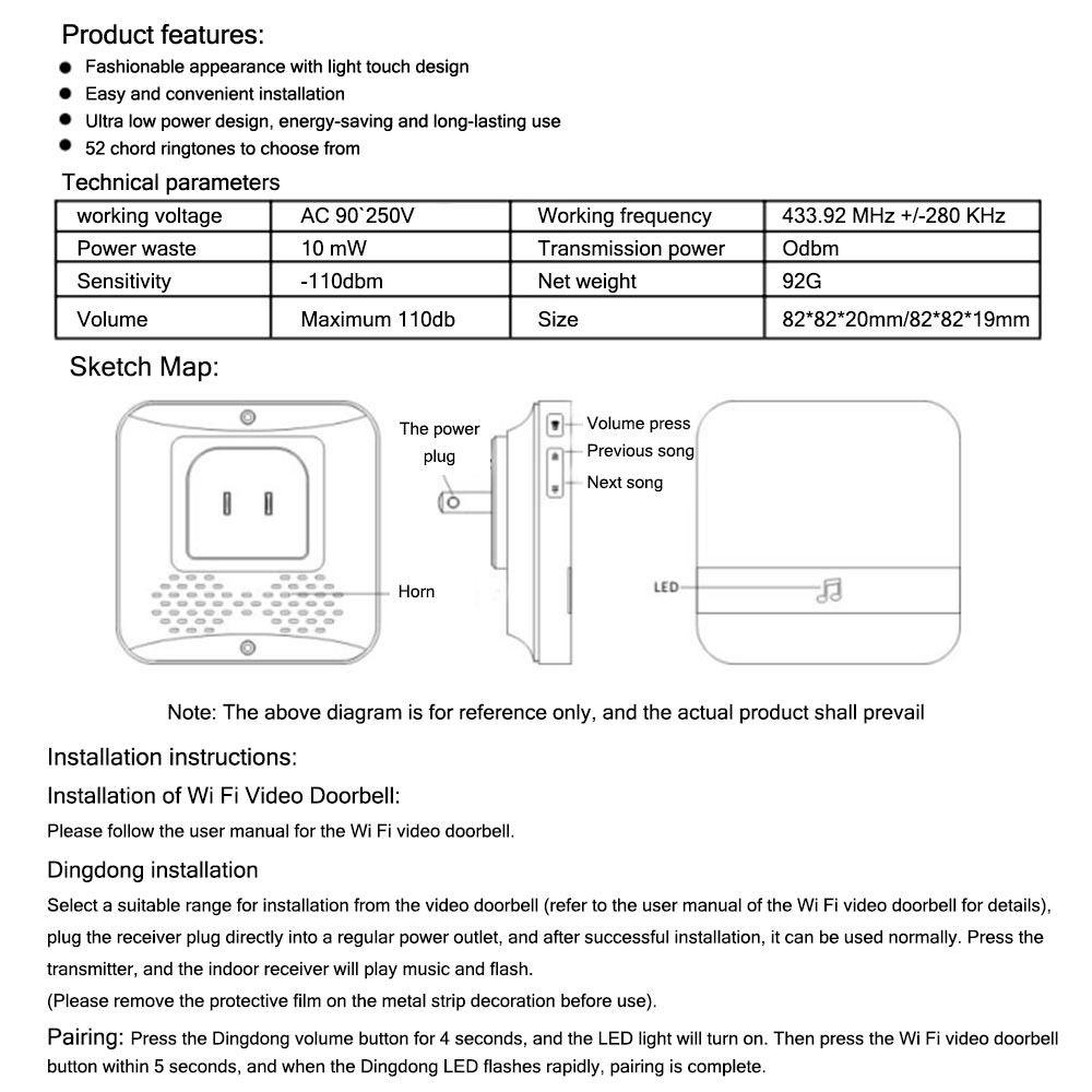 Умный приемник с низким энергопотреблением Приемник дверного звонка Беспроводной WiFi Дверной звонок Мелодия Звонок Внутренний звонок