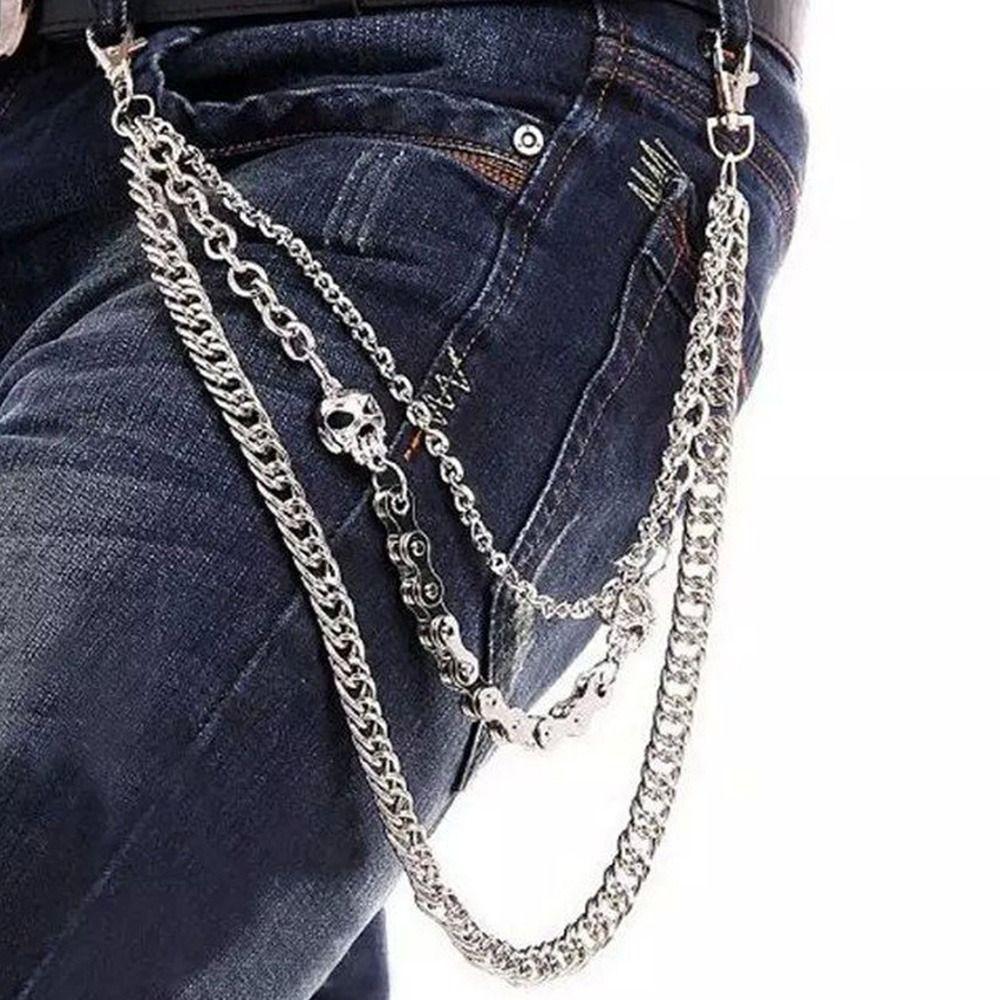 Готические джинсы брюки 3 слоя панк череп брелки сверхпрочная поясная петля соединительная спиральная цепочка для кошелька