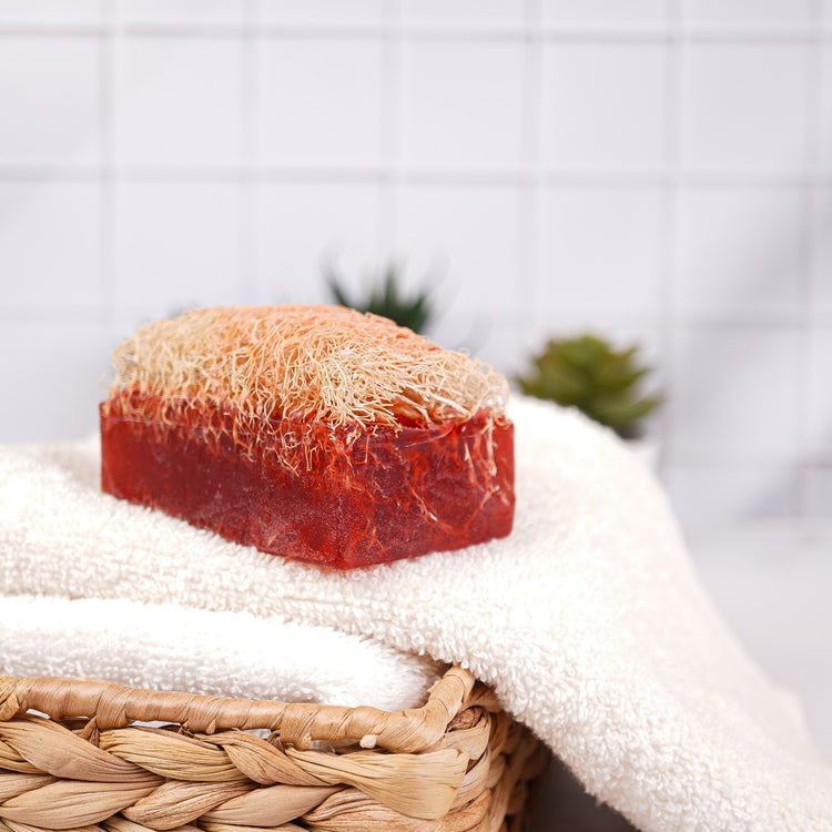 Soften the natural loofah with hot water. Apply the soap to the skin moistened with lukewarm water, using circular movements. Apply the softened loofah to the skin where you applied the soap by massaging it with circular movements without putting too much pressure. It is suitable for use on both face and body. When used on the face, apply with very gentle circular movements. For external use only.