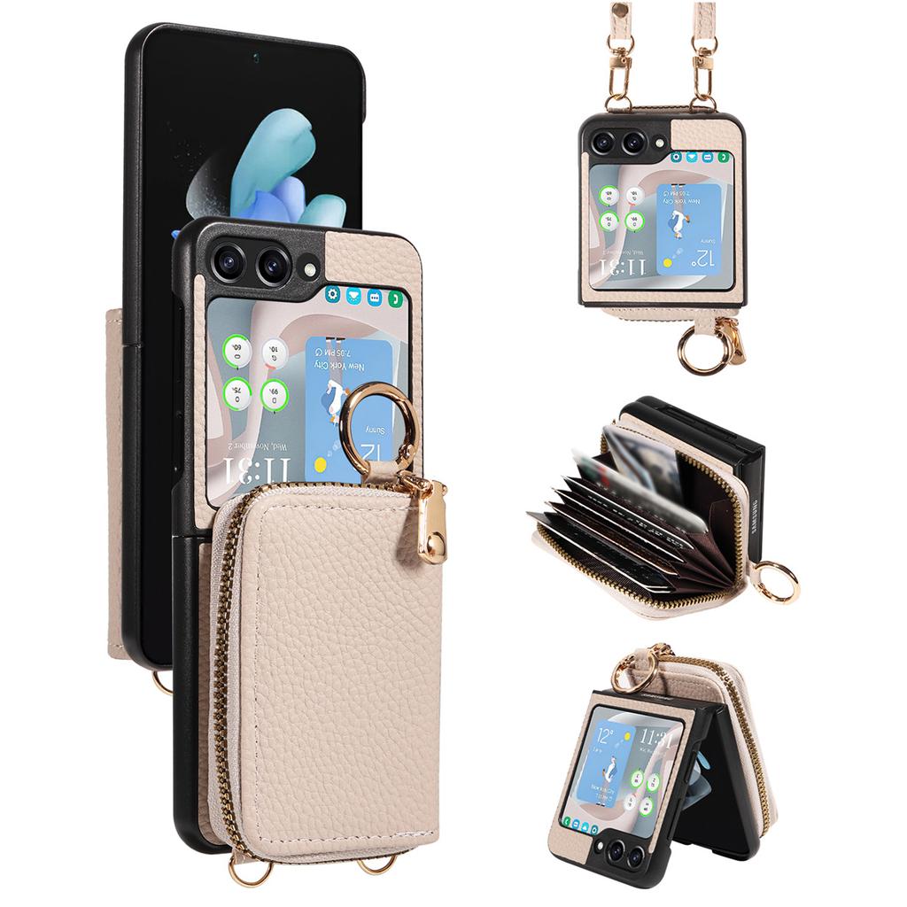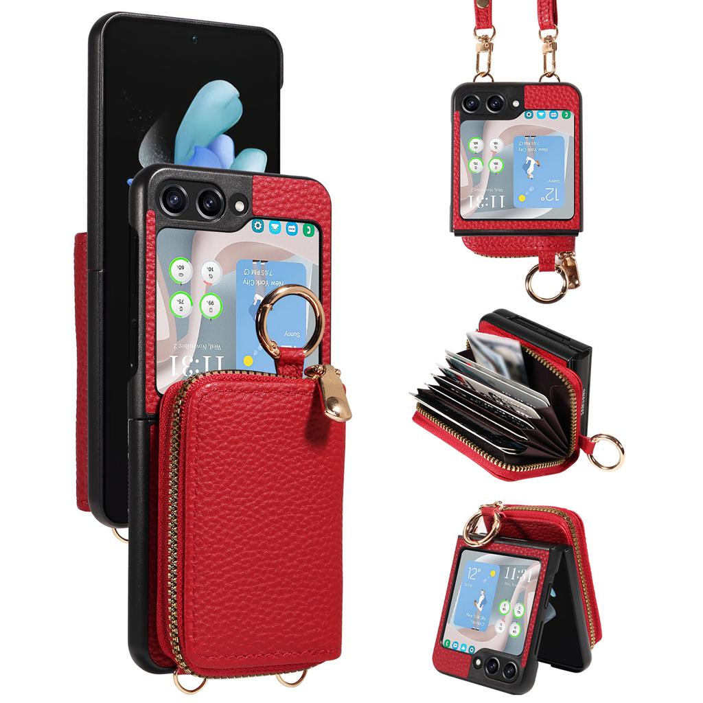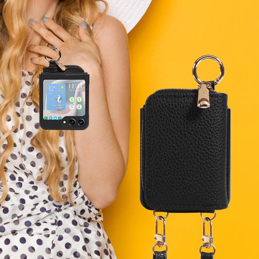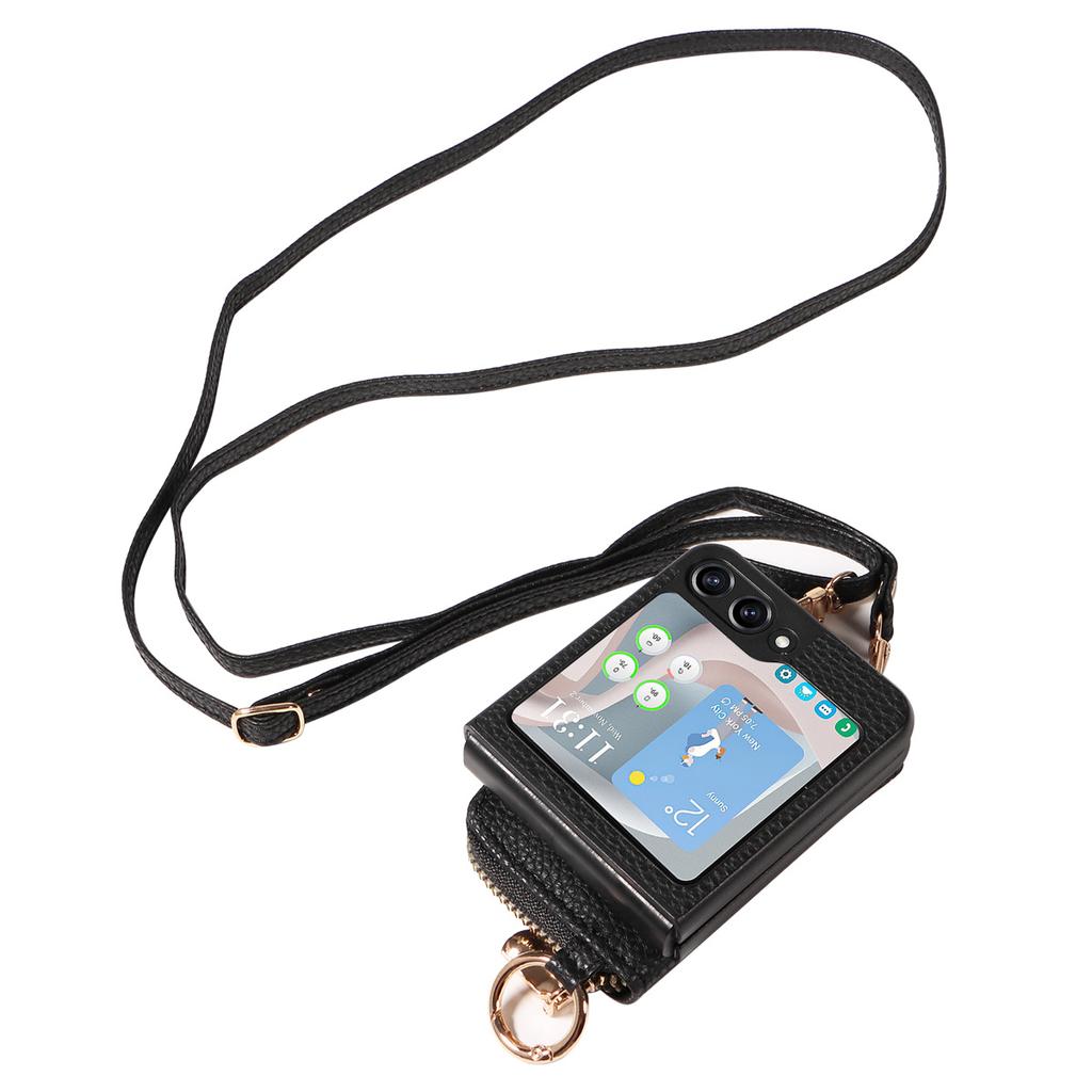 Чехол для телефона из искусственной кожи для Samsung Galaxy Z Flip6 5 4 3 5G, противоударный ремешок через плечо, длинный ремешок, складывающийся вверх и вниз