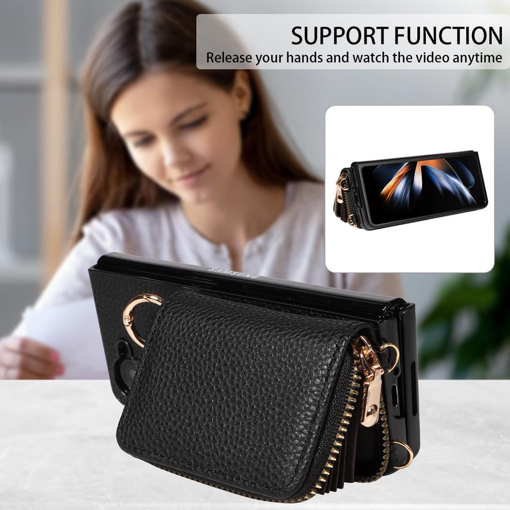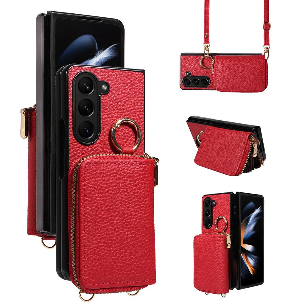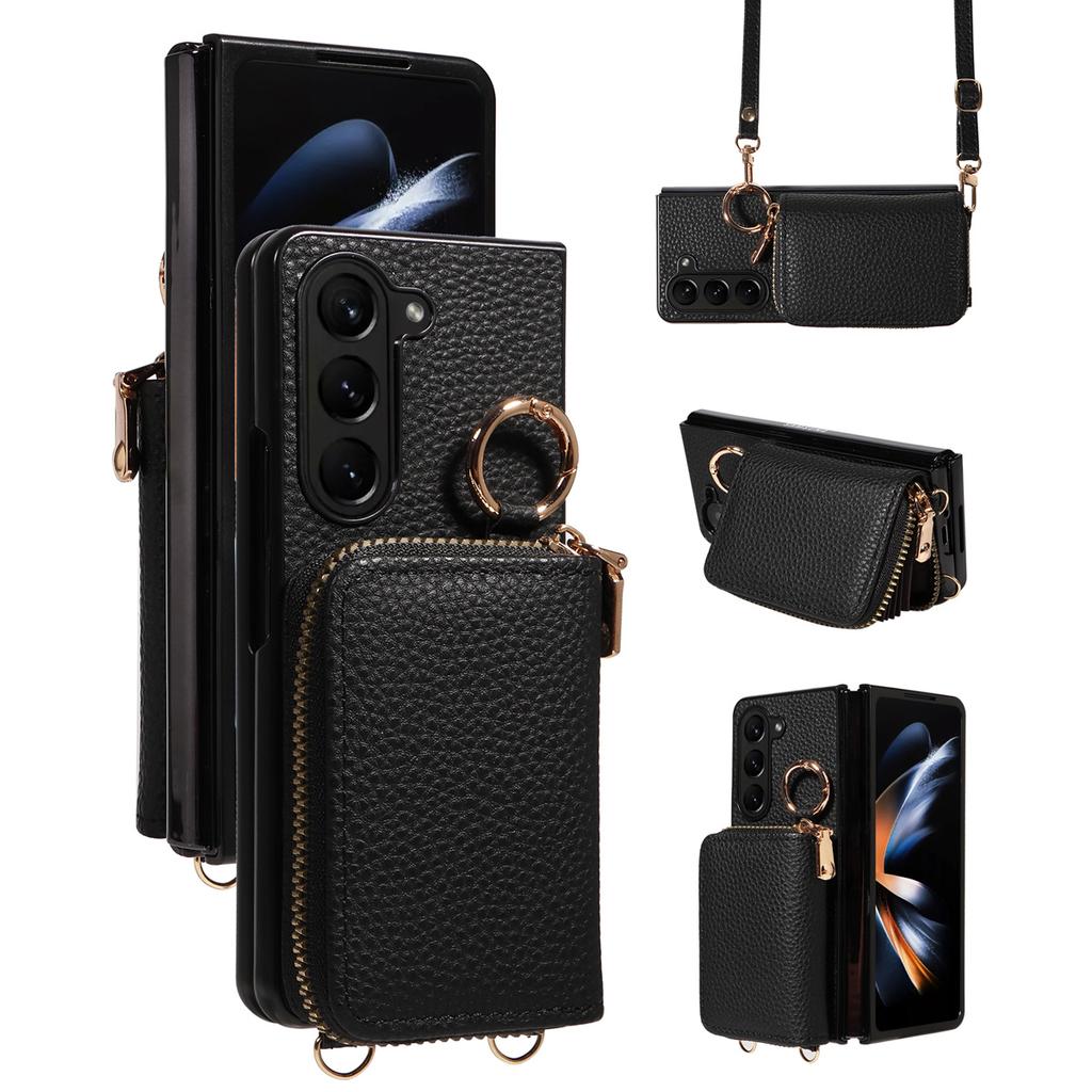 Чехол из искусственной кожи для телефона Samsung Galaxy Z Fold6 5 4 3 5G, противоударный, с длинным ремешком через плечо, складная модель с открыванием влево и вправо