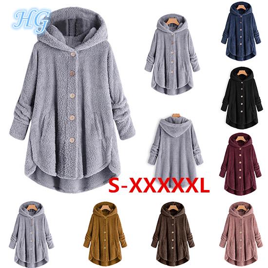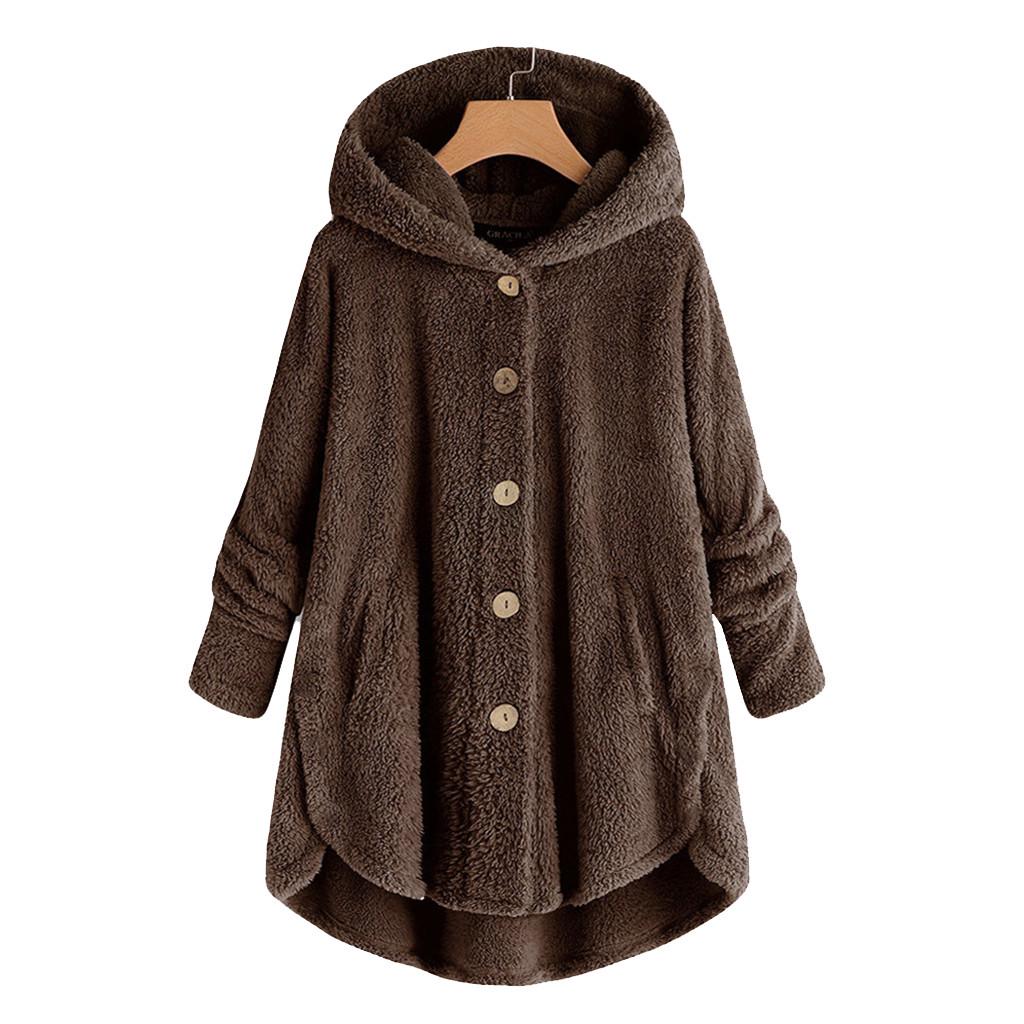 Модные женские туфли размера плюс на пуговицах плюшевые топы с капюшоном свободный кардиган шерстяное пальто зимняя куртка