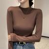 Длинный рукав Женская холодная базовая теплая футболка Модальная нижняя рубашка Однотонная осенняя футболка с полувысоким воротом и круглым вырезом с маленьким воротником