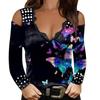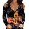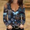 Весенне-осенний женский пуловер с v-образным вырезом и принтом, футболка с длинными рукавами, женская