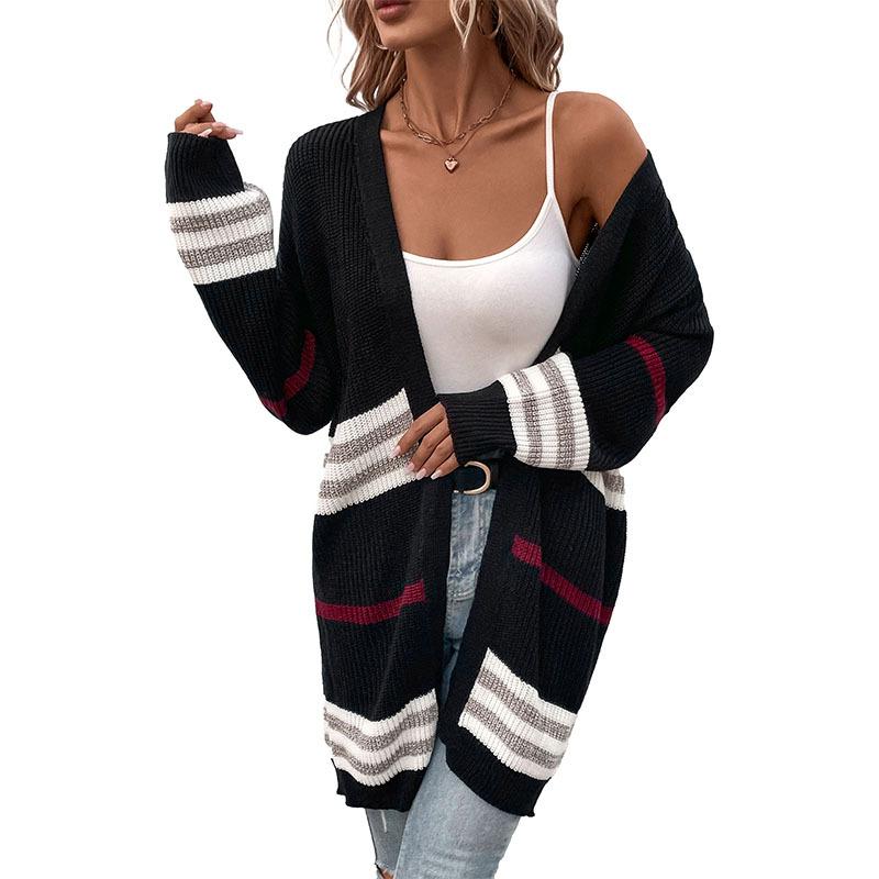 Повседневный тренд, универсальная мода, женская осенне-зимняя одежда с длинными рукавами, цветное смешение, длинный джемпер, кардиган, куртка