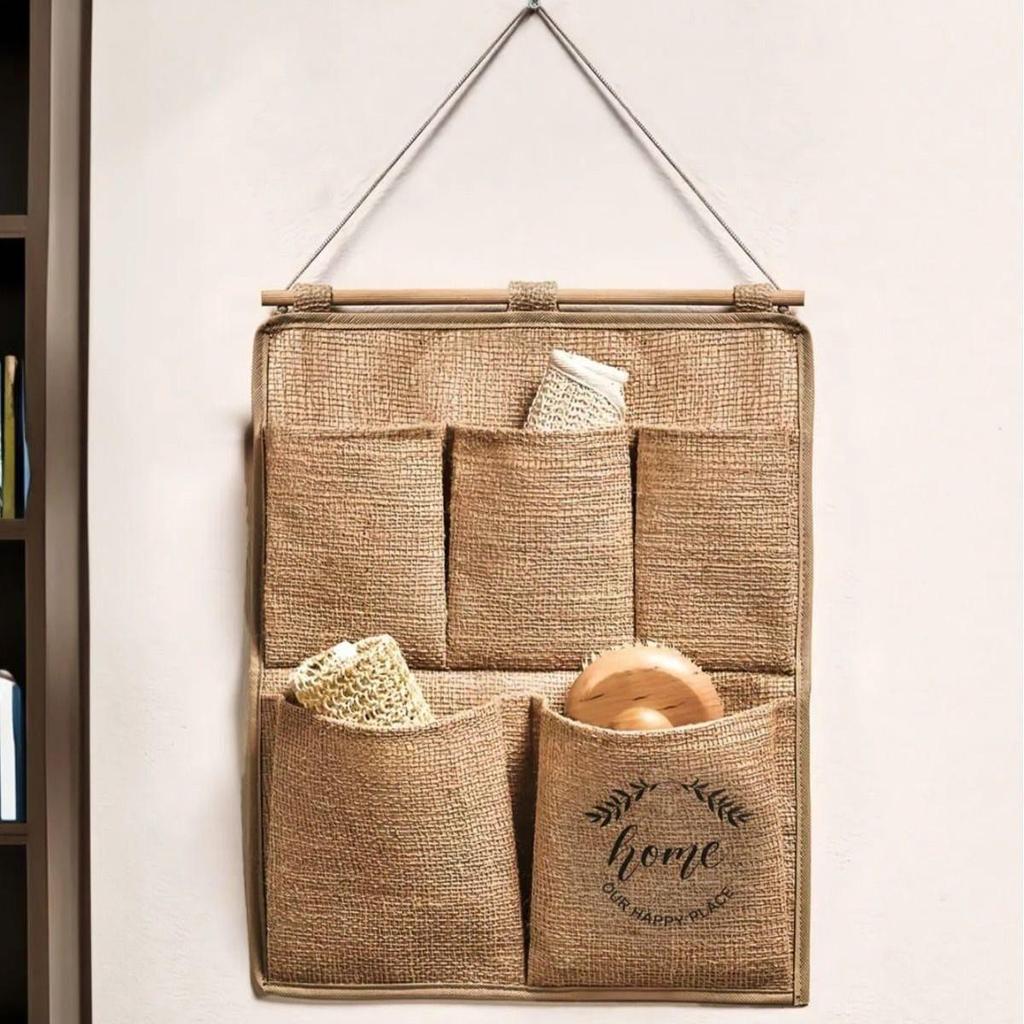 Джутовый 5-карманный многоцелевой подвесной настенный шкаф для ванной комнаты и кухни, органайзер 35x45