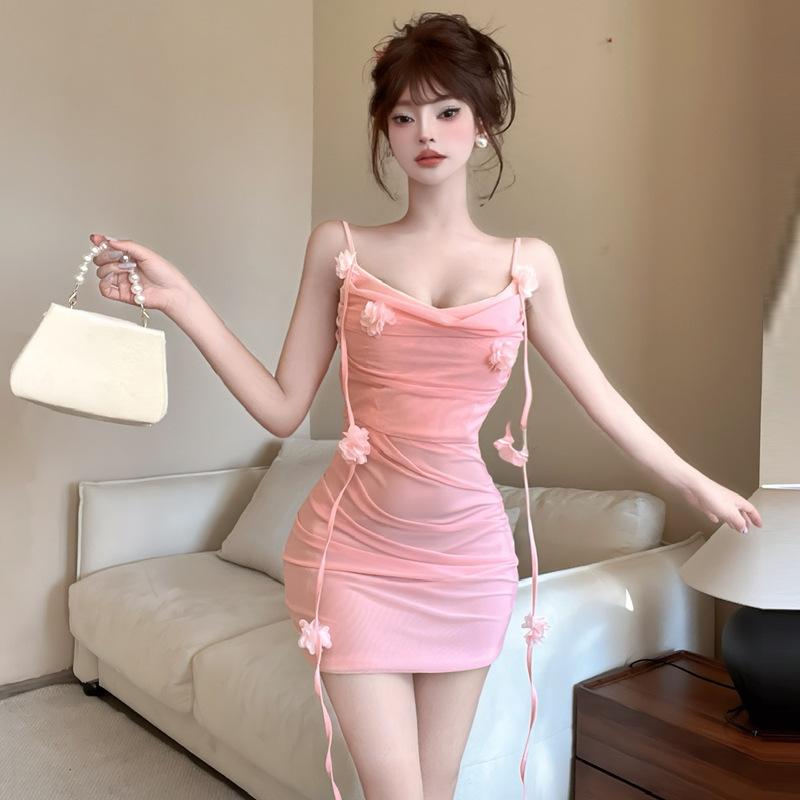 Женское сексуальное сетчатое короткое платье с трехмерным цветочным принтом на подтяжках