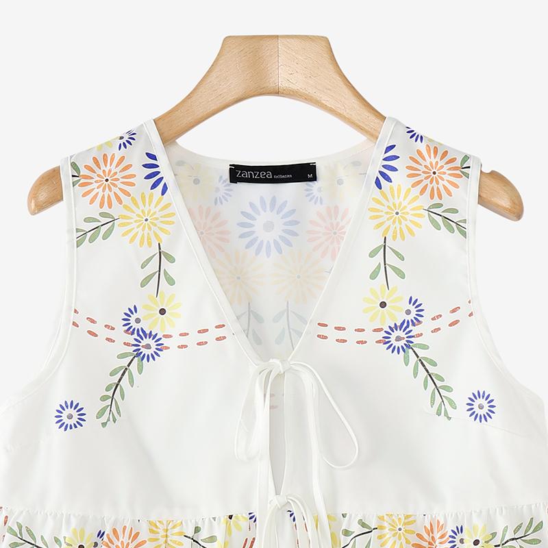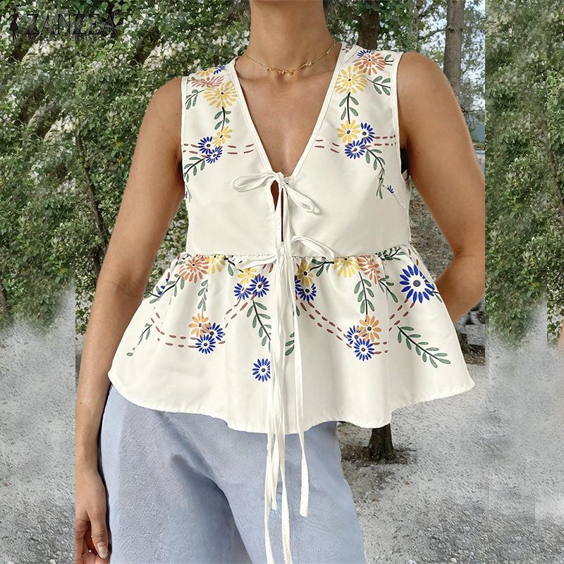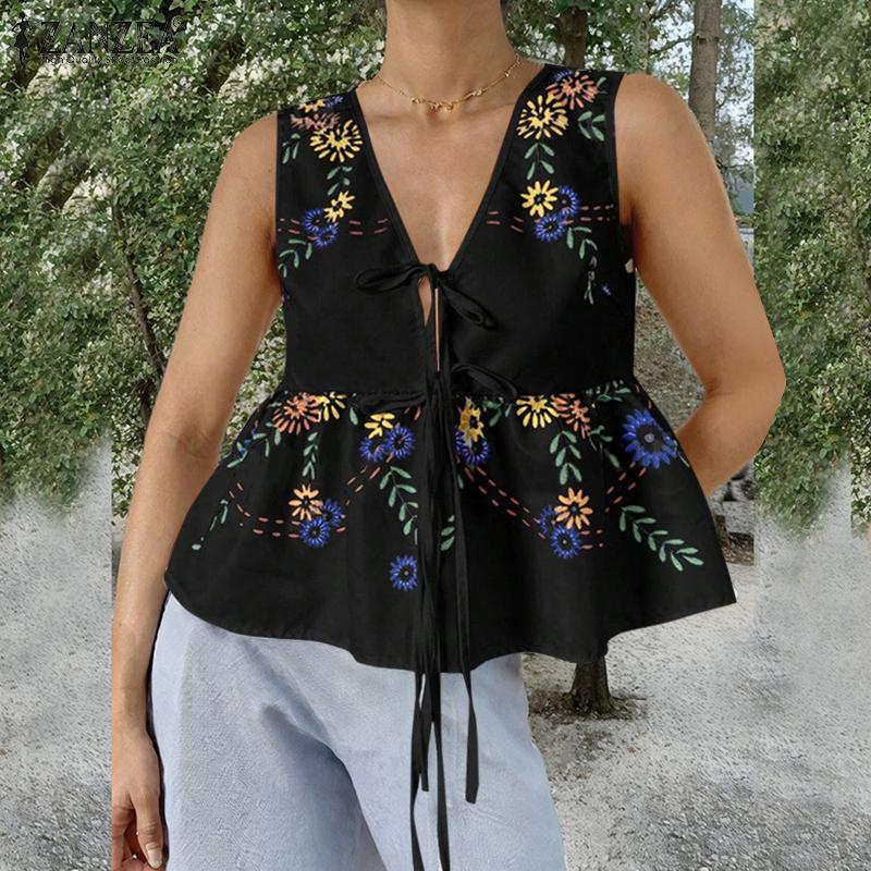 ZANZEA Женские сексуальные топы без рукавов с V-образным вырезом и шнуровкой