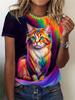 2024 Лето Новая женская футболка с 3D-цифровым принтом, креативный анималистичный узор, круглый вырез, повседневный свободный модный топ с коротким рукавом
