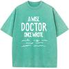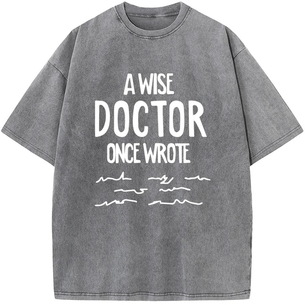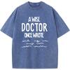 Футболка с коротким рукавом с принтом «Однажды мудрый доктор написал», 230 г, хлопковая стираная футболка с круглым вырезом, модная новинка, свободная отбеленная футболка