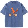 Мужская стираная футболка Fox Bicycle, летняя хлопковая отбеленная футболка, винтажные свободные повседневные футболки, модная свободная отбеленная футболка