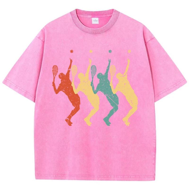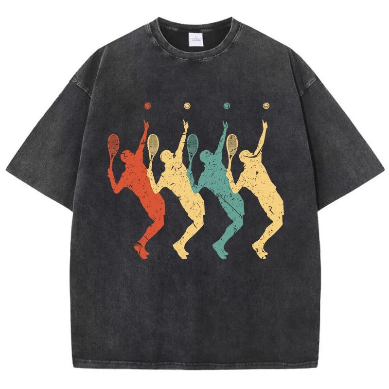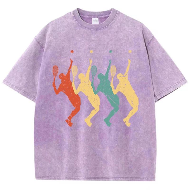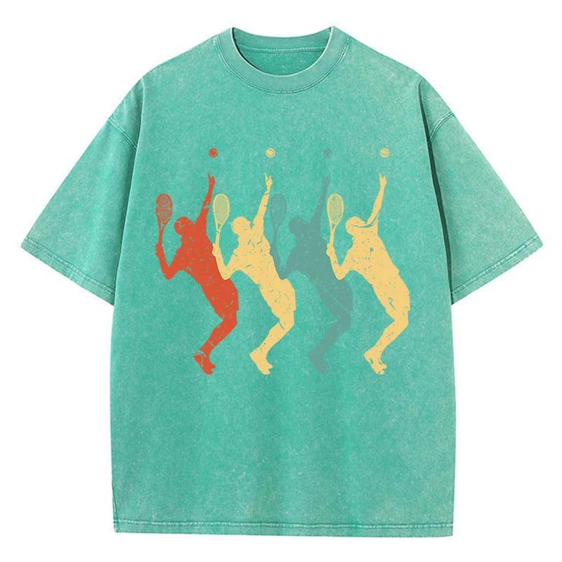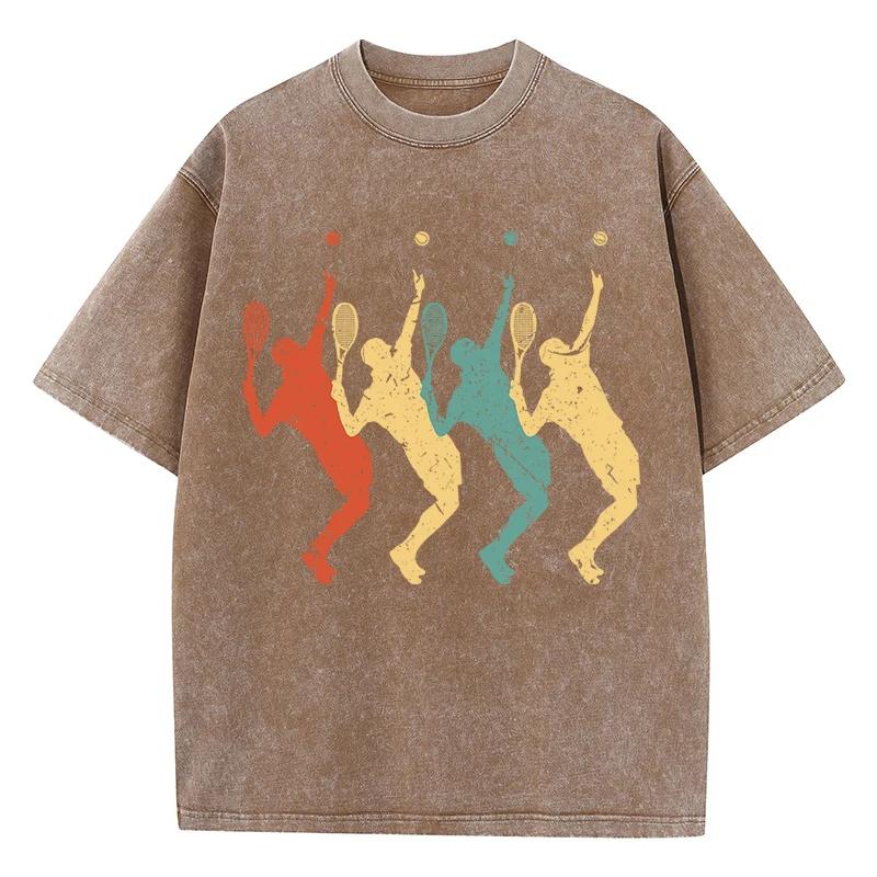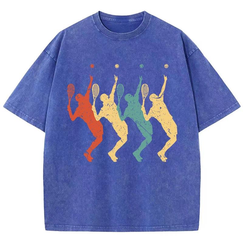 Футболка с четырьмя разноцветными тенями теннисистов, мужская футболка Vigor Comfort, хлопковая футболка с круглым вырезом, топы Normcore