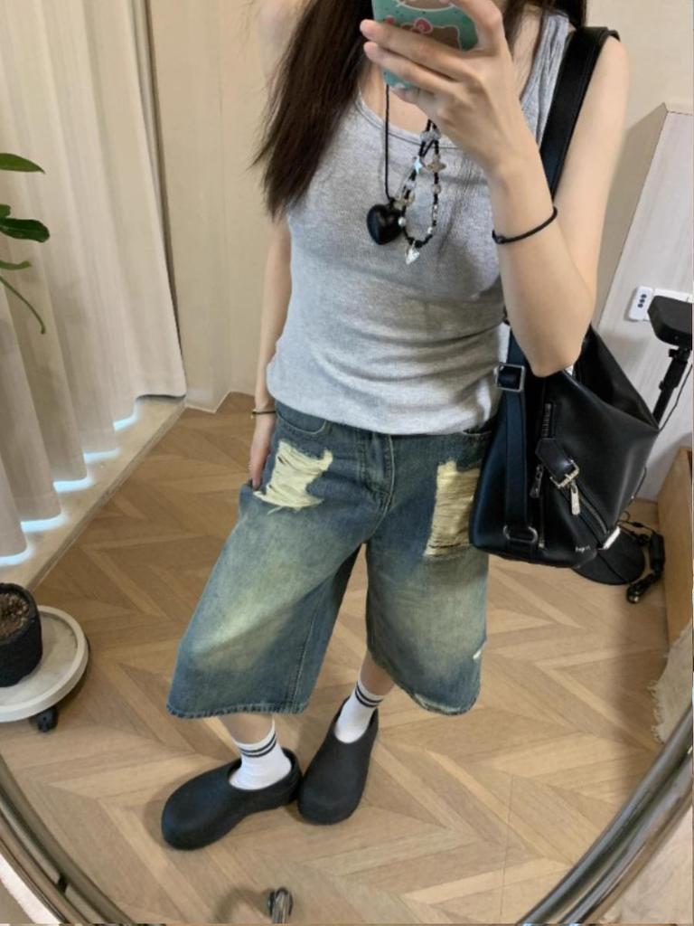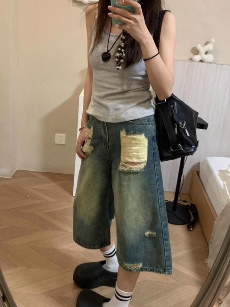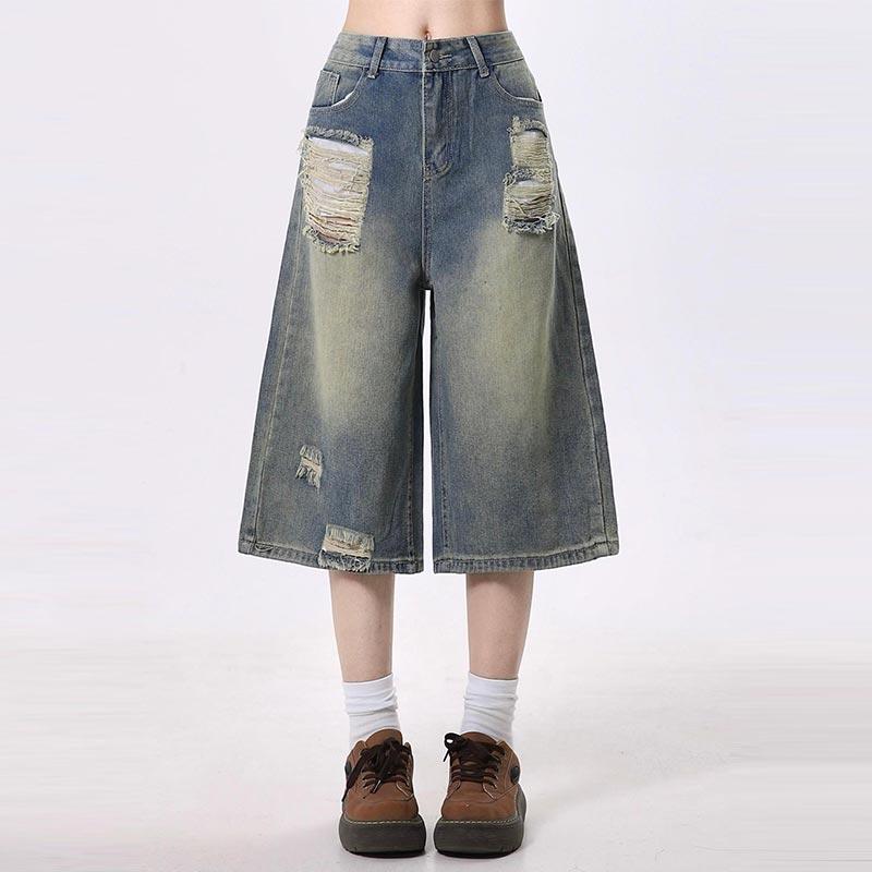 Ретро рваные джинсовые шорты для женщин мешковатые джинсы Seven Point, трендовая одежда Y2k Streetwear Лето