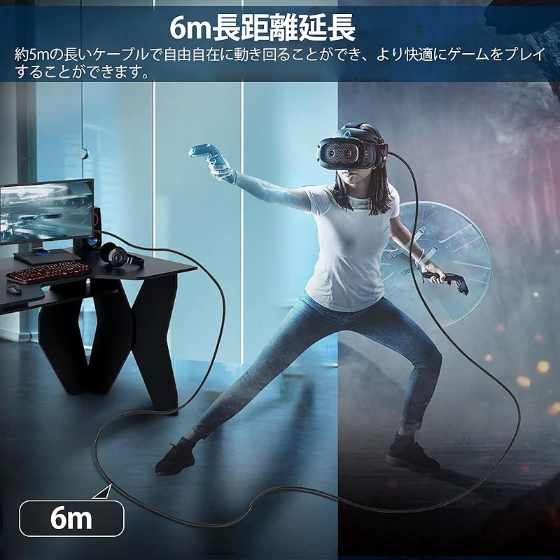 [Удлинение на 6 м] Кабель длиной около 6 м позволяет вам свободно перемещаться и играть в игры с большим комфортом.