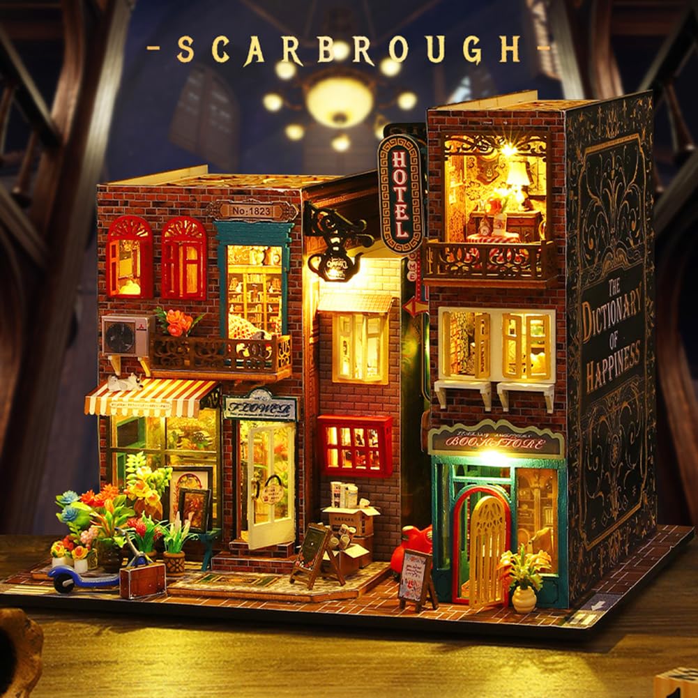 CPOWACE DIY Dollhouse Scarborough Handmade Kit Миниатюрная коллекция для начинающих Акриловый футляр в комплекте (ES009)