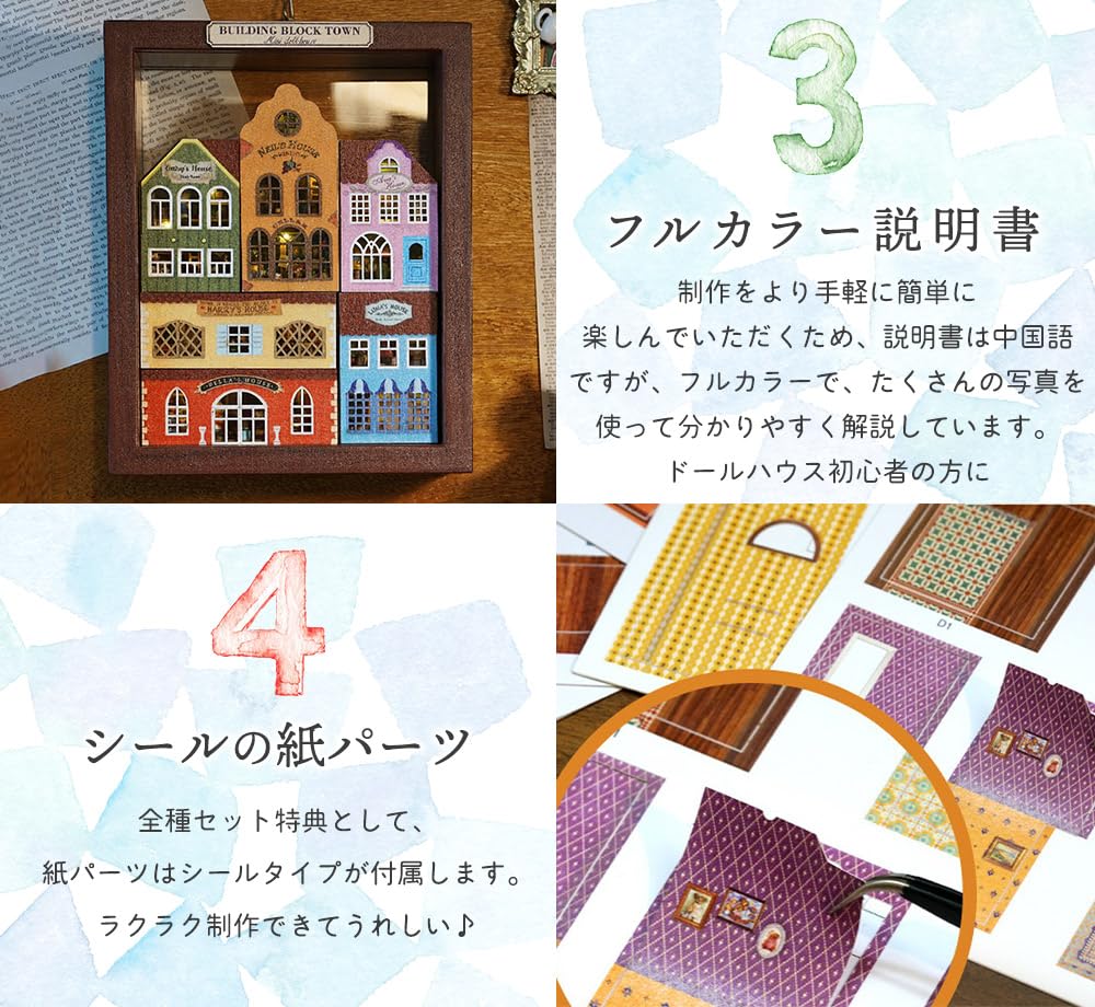 Этот продукт представляет собой набор для сборки миниатюрного кукольного домика.. Переднюю панель крошечного домика можно снять с помощью магнита, что позволит вам заглянуть внутрь.. Он действительно маленький, но даже если посмотреть на него вблизи, он выглядит совсем как настоящий.. Рамку можно использовать как вертикально, так и горизонтально.. В качестве бонуса ко всем типам наборов прилагаются предварительно вырезанные бумажные детали. (6 типов + рамочный знак)