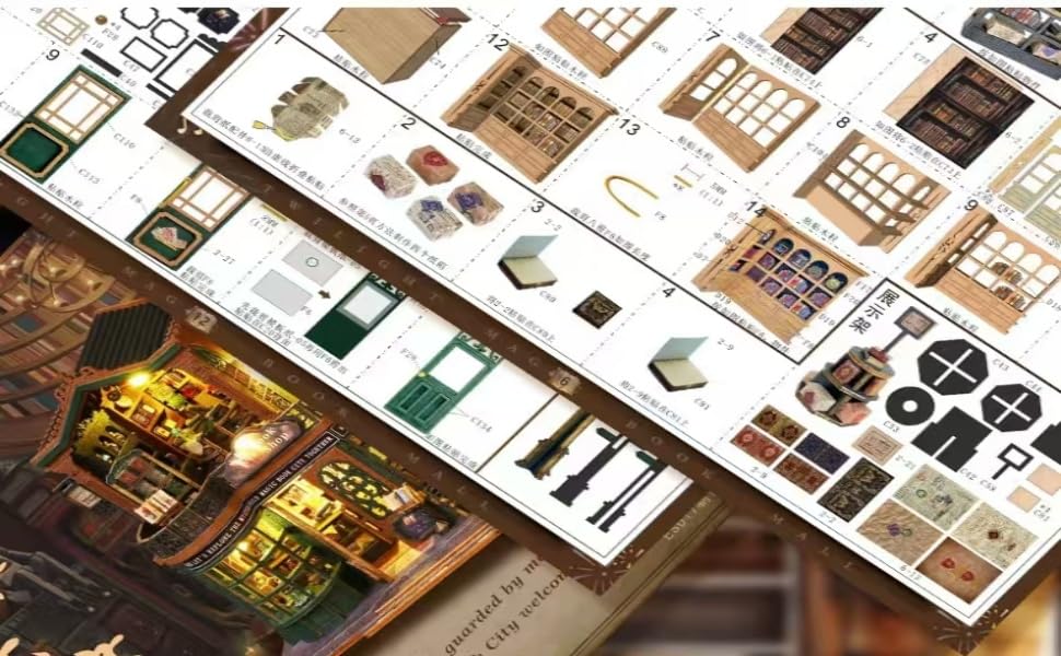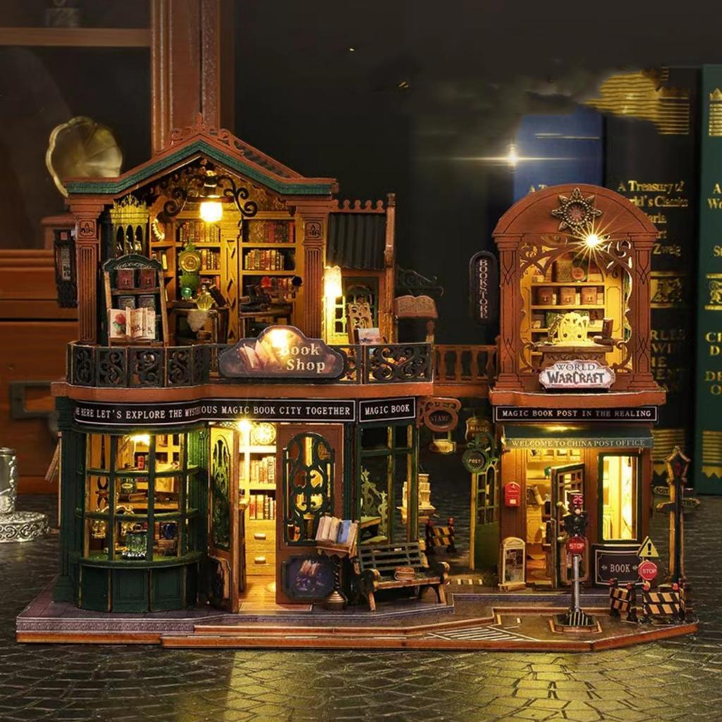 FSEARRT Dollhouse Handmade Kit Set Miniature Dollhouse Kit Living Room Interior Present Healing Goods Bookstore (Twilight (Dustproof Case))