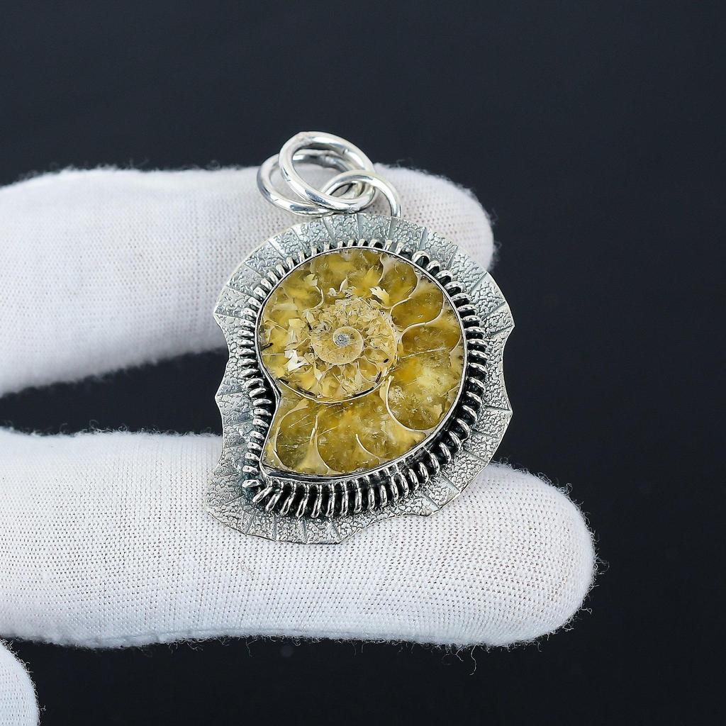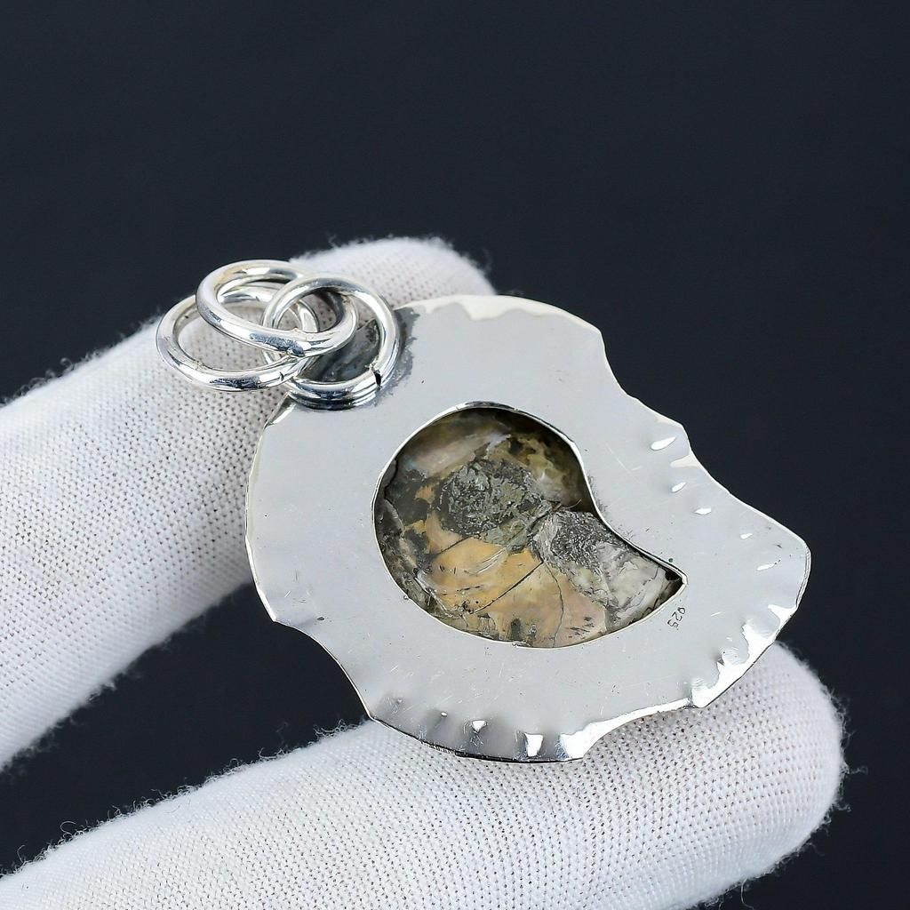 Натуральный Аммонит Драгоценный Камень Серебряный Кулон из Стерлингового Серебра 925 пробы - Дизайн Ручной Работы, Украшение для Повседневной Носки, Уникальный Кулон Подарок на День Рождения
