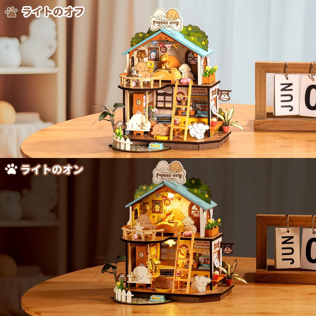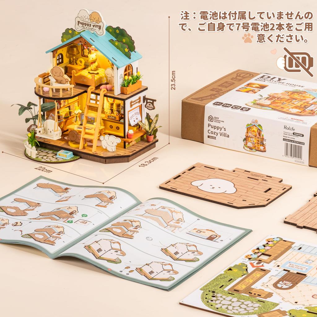Rolife 3D Puzzle Кукольный домик DIY LED 3D Puzzle Набор для самостоятельной сборки кукольного домика Деревянный пазл Иллюстрированные инструкции в комплекте Вход Внутреннее оформление Создание атмосферы Вход Для детей Новички Взрослые Аксессуары для интерьера Убийство времени День рождения День святого Валентина Рождество Идеальный подарок Официально продано (Вилла для щенков) Размер товара: 220*183*235мм (Вам нужно подготовить 2 Нет. 7 батареек самостоятельно)