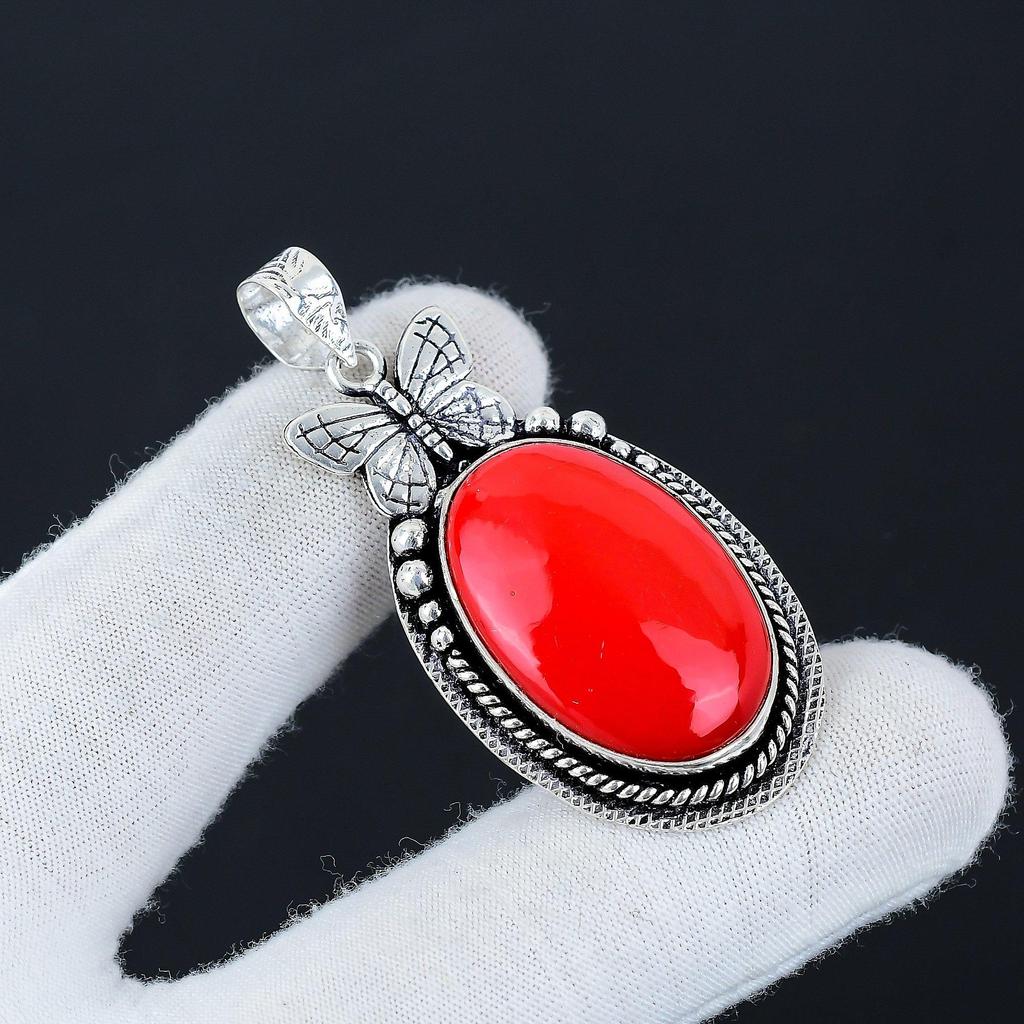 Серебряный кулон с натуральным красным кораллом из стерлингового серебра 925 пробы — дизайн в виде бабочки ручной работы, повседневные украшения, уникальный кулон в подарок на День отца