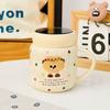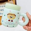 Сердце для девочек с крышкой Ложка Кролик Мультфильм Керамическая чашка Милая розовая кружка Высокий внешний вид Большая емкость Сувенир
