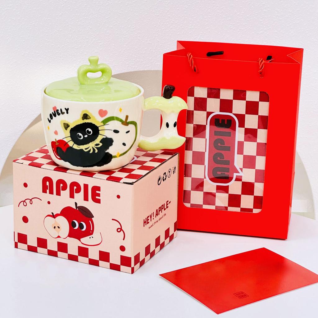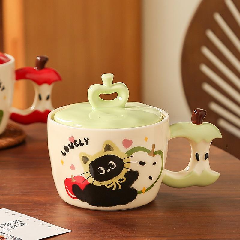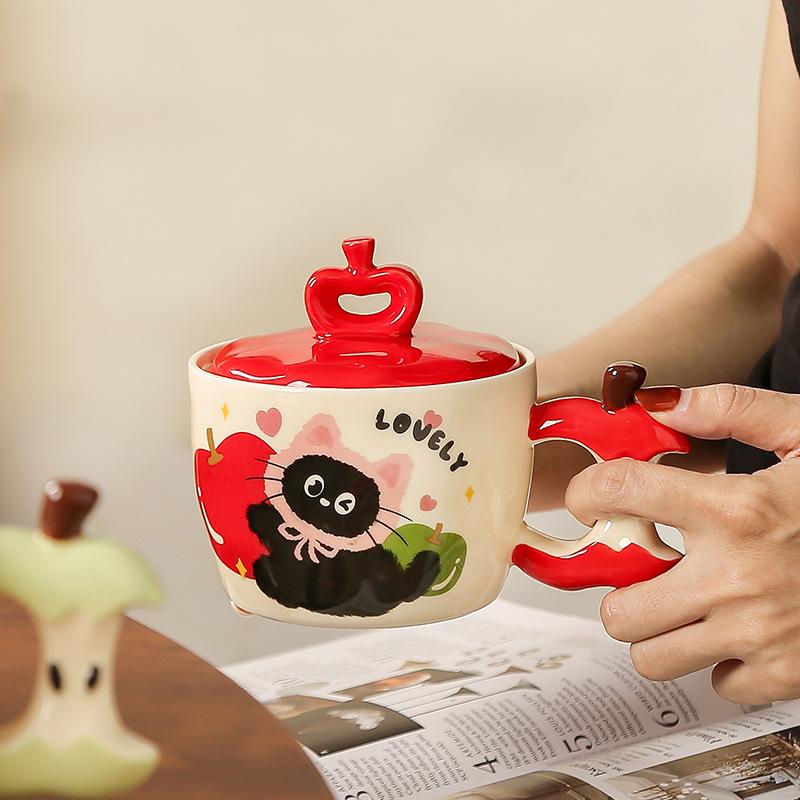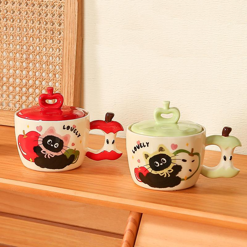 Яблоко Кот с крышкой милый мультфильм высокая стоимость большой емкости керамическая чашка маленький подарочный набор кружек