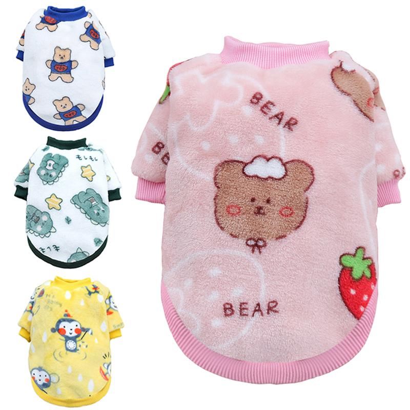 Зимняя теплая одежда для маленьких собак, мягкий фланелевый жилет для домашних животных, пальто для французского бульдога, йоркширский мультяшный принт, щенок, кошка