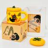 Открывающийся небольшой подарочный набор с крышкой в виде мультяшного кота, милая чашка для воды, набор для дома, керамическая чашка, высокая стоимость, маленькая оранжевая чашка
