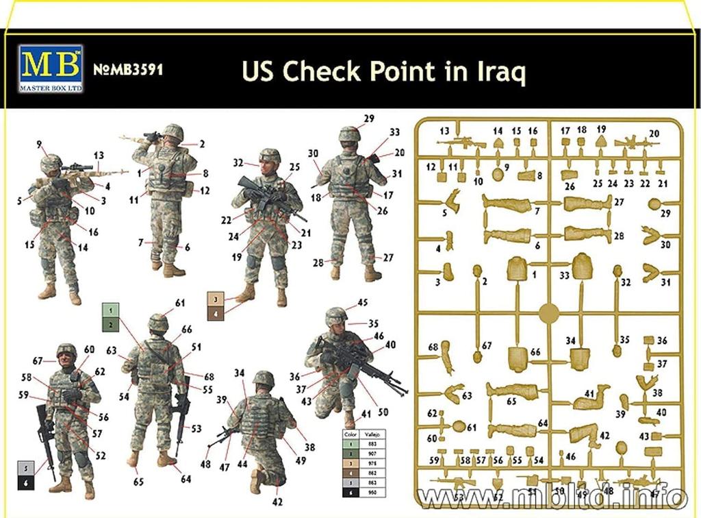 Master Box Американская армия 4 модели Ближневосточная база безопасности полное оборудование пластиковая модель MB35091 1/35