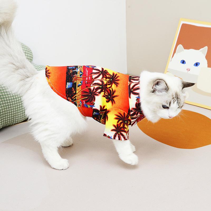 Гавайская пляжная одежда с принтом для кошек и маленьких собак, футболка для щенков, одежда для домашних животных, спортивная рубашка, летний костюм для домашних животных, жилет Йорки