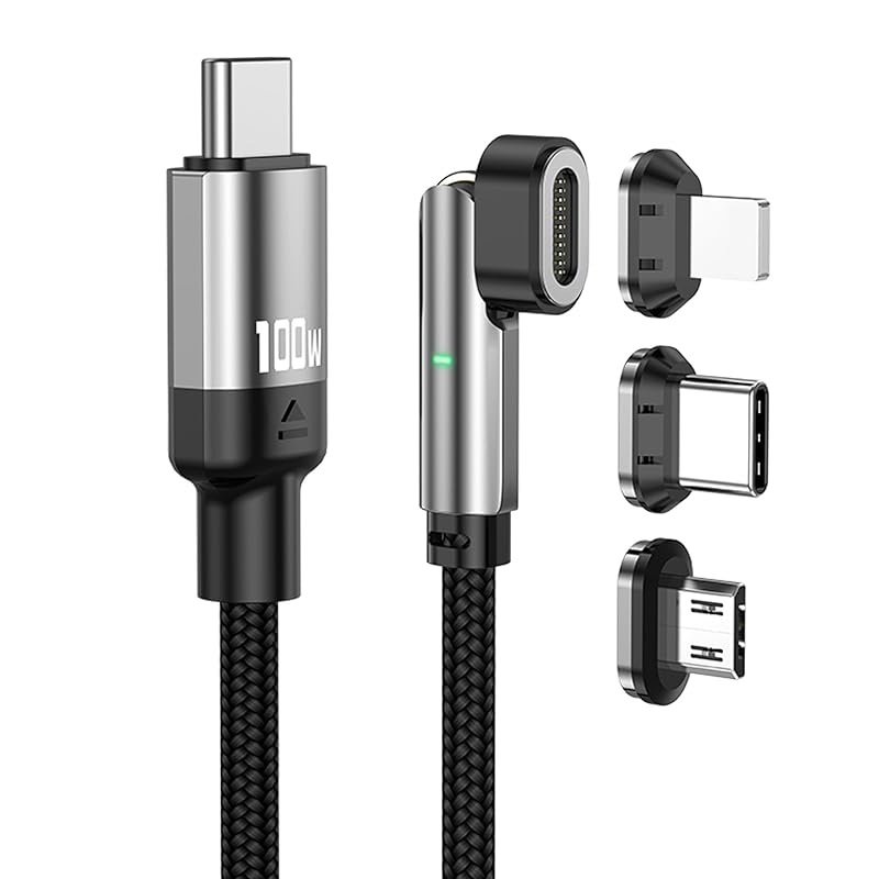 Магнитный кабель для зарядки - черный оплетенный нейлоновый кабель USB-C для быстрой зарядки и передачи данных, 100 Вт, 5 А (Micro USB, USB-C, Совместимость с телефоном) 2м, черный