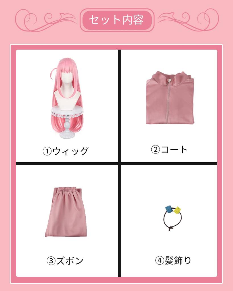 Хитори Гото Косплей с париком Guitar Hero Bocchizarok Косплей Костюм Полный комплект Костюм для взрослых Культурный фестиваль Goto Брюки Парик [Kamizu Ryohin]