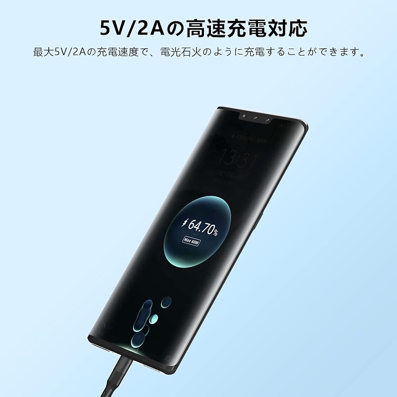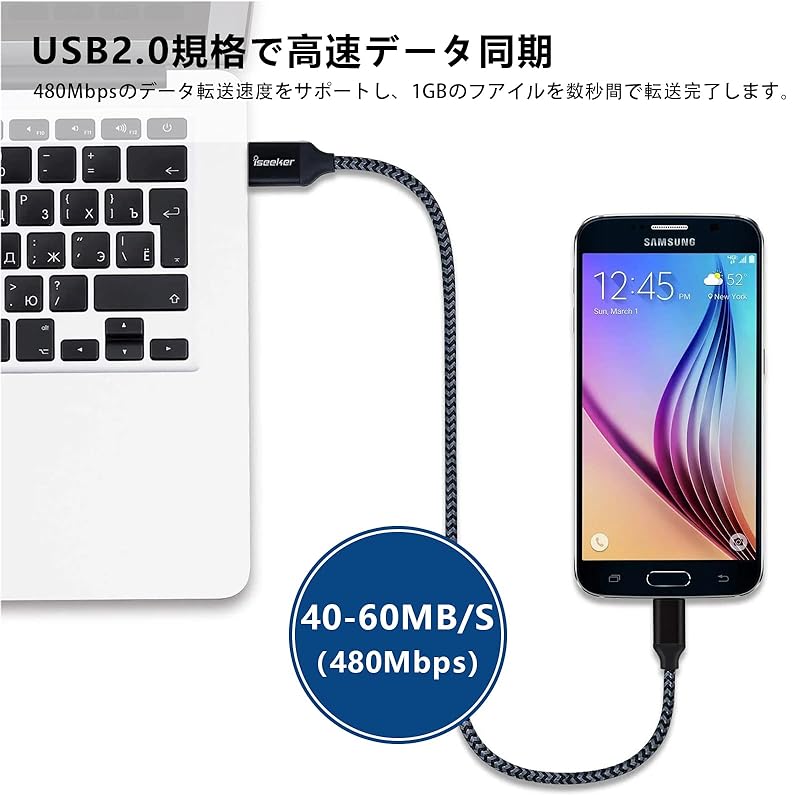 [Быстрая зарядка и передача данных] Зарядный кабель 2А заряжает быстрее, чем кабели стандартного типа, и может передавать данные со скоростью до 480 Мбит через USB 2.0.