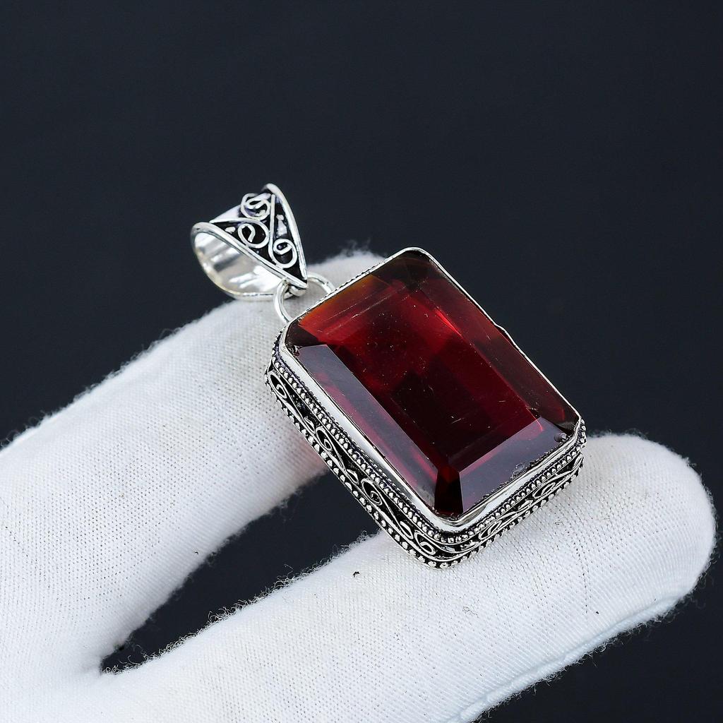 Изящный серебряный кулон с красным гранатом и драгоценным камнем из стерлингового серебра 925 пробы — дизайн ручной работы, повседневные украшения, уникальный кулон в подарок на день рождения для жены