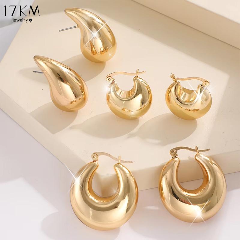 17KM золотой цвет капли воды серьги кольца комплект для женщин девочек ретро круг гладкое лицо нерегулярные серьги гвоздики ювелирные изделия новая мода