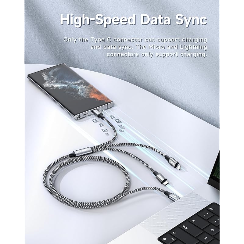 [Широкая совместимость] Этот кабель для зарядки Type C 3 в 1, сверхбыстрый кабель USB C для зарядки, кабель для зарядки iPhone, кабель Micro USB имеет три функции в одном кабеле. Кабель Multi USB совместим с iPhone 15/14/13/12/11/11 Pro/11 Pro Max/XR/XS Max/XS/X, Galaxy S24/S23/S22/S21/S20/S10+/S10/S9+/S9/S8, Note 20/9/8/A90/A70/A51/A21s, MacBook Pro 16/14/13 (2021), MacBook Air 13 (2020), Pad PrСовместим с o 12.9 (2021), Pad Mini 6, Pad Air 5. P60/P50/P40/P30/P20/P10, Honor, HTC, Moto, Nokia, LG, Kindle и т. д.