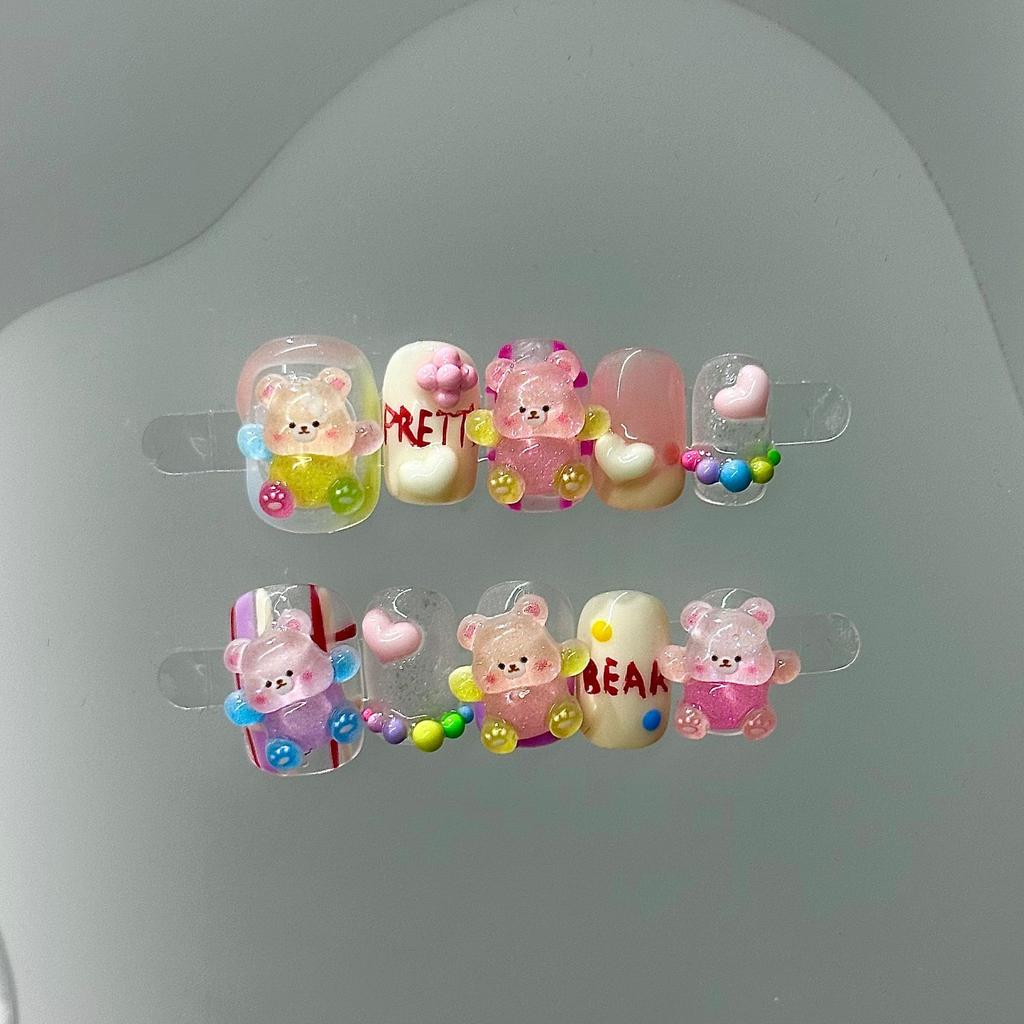 Быстрые ногти, накладные ногти ручной работы, милый медведь, наклейка для ногтей, нейл-арт, светотерапия, накладные ногти, наклейка для ногтей, наклейка для ногтей